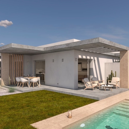 New Phase Launch One large ‘Ventura’ linked villa and 8 semi detached ‘Elisa Villas’ – all designed to provide the very best open plan living space, featuring double full glass sliding doors that open directly on to a large terrace with private swimming pool, terrace and parking area.