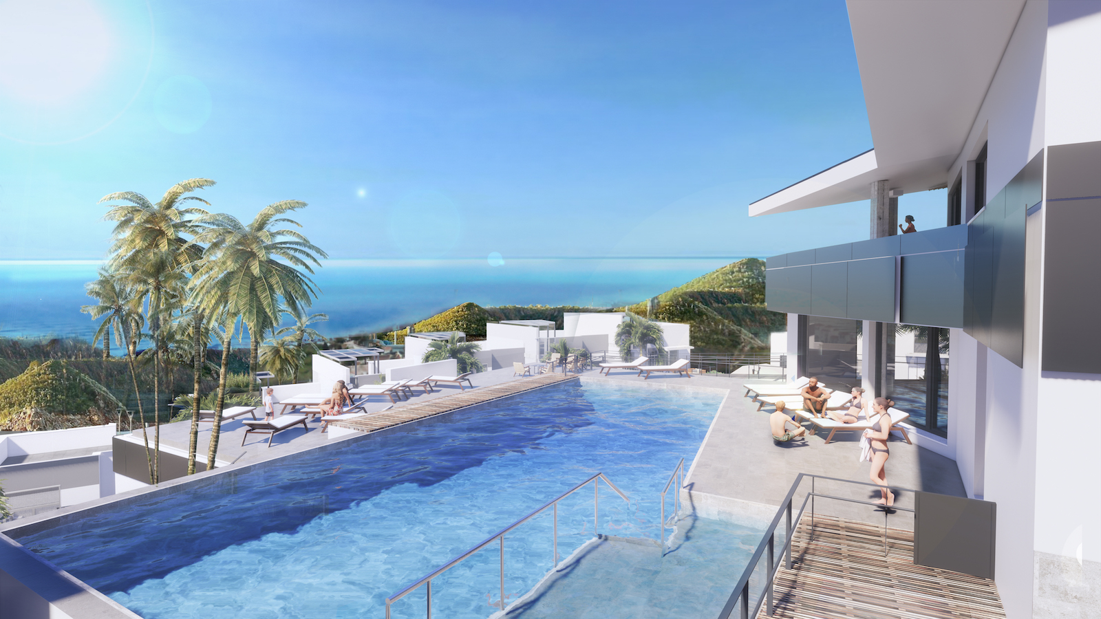 All houses have a beautiful view of the Mediterranean Sea and the mountains. They all have a nice suite master bedroom, spacious bedrooms and a wide-open kitchen and living room leading out to the sunny large terraces.