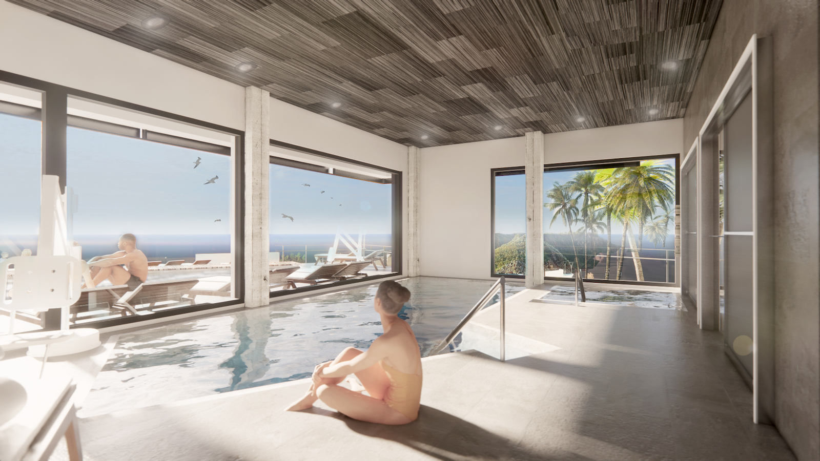In addition, there is a heated communal pool, steam room, sauna, tapas bar, rental and cleaning administration.