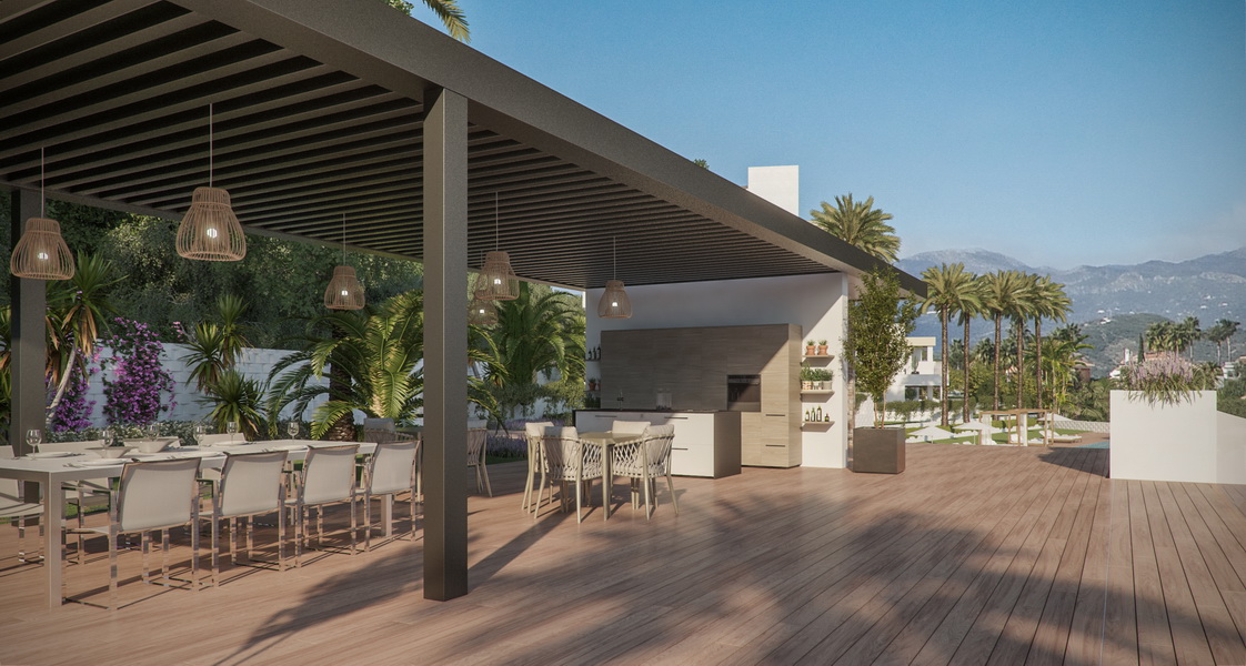It is only a 20-minute drive to exclusive places like Puerto Banús and Sotogrande. There are also common areas and swimming pools. In addition, your house will be equipped with a multifunctional hall, a fitness and recreational areas.