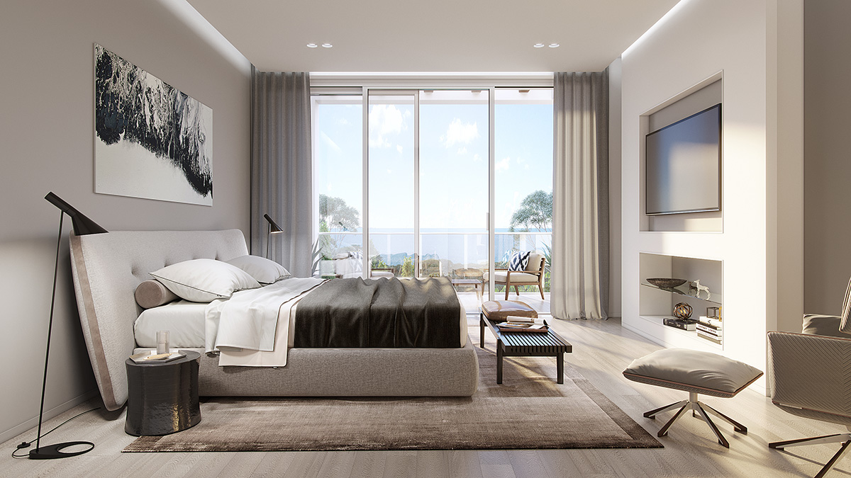 Distributed over 3 levels each residence has a wide array of features for luxury and contemporary living including; a private pool, personal elevator, rooftop solarium, double-car underground garage and large stylish walk-in dressing rooms also with sea views.
