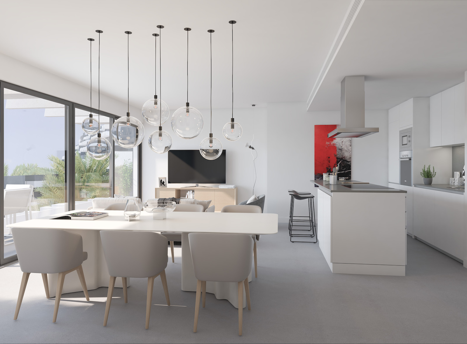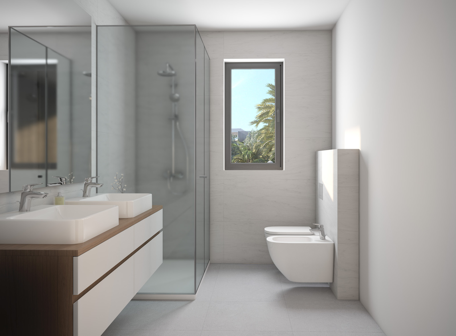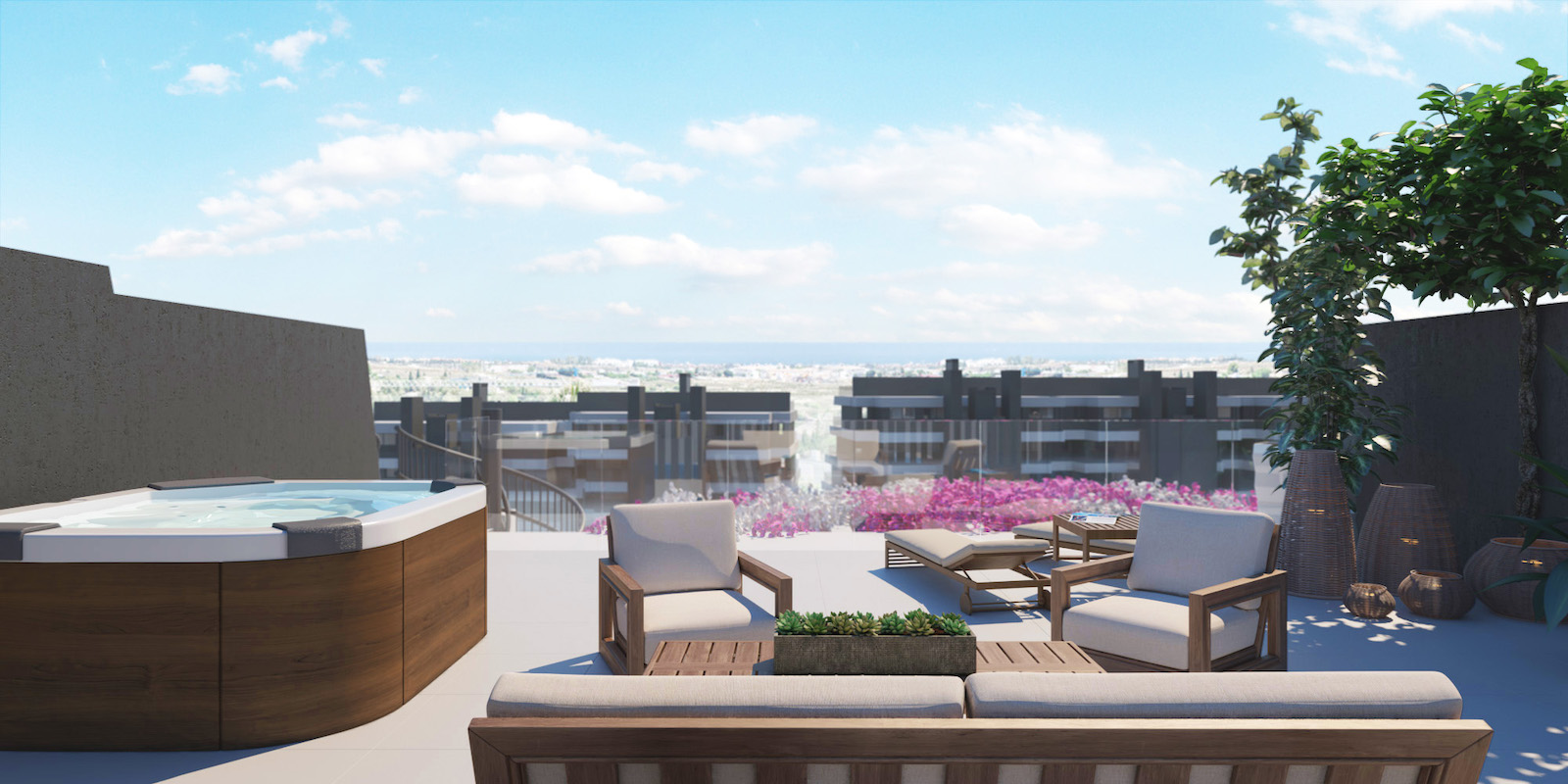 The penthouses of Oasis 325 are vantage points on the landscape of Estepona. Their terraces with solarium are integrated as one more element of their distribution. The borders between the outside and the inside are blurred, so you can enjoy the best design with panoramic views.