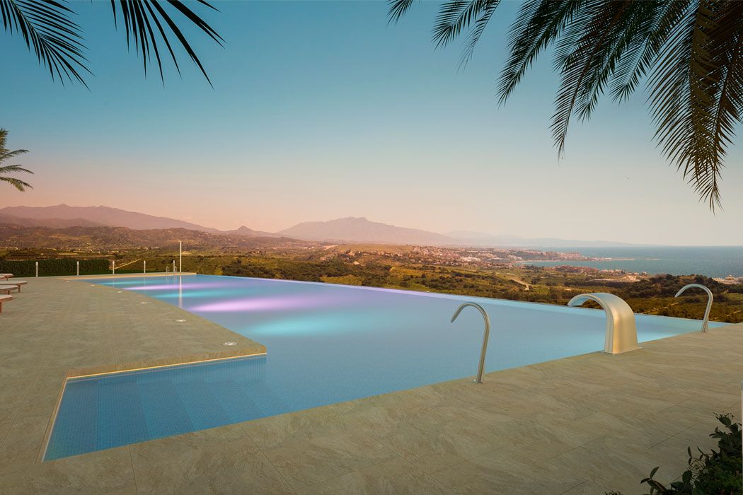One of the main characteristics of the residential TERRAZAS DE CORTESIN-SEAVIEWS is the LOW CONSTRUCTIVE DENSITY, very few units in a large space. THE EXCLUSIVITY that also allows the development of houses with large rooms and large terraces with a VANGUARD ARCHITECTURE visually very attractive, elegant, relaxing and cared for finishes, generous and beautiful spaces designed to be enjoyed at all times. The result is a set of high-level housing, divided into 3 blocks of only 44 dwellings in total. In Block A 16 units, in B 14 units and in Block C 14 units. As for the type of housing, 18 apartments with 2 bedroom, 8 apartments with 3 bedrooms, 3 penthouses with 2 bedrooms and 3 penthouses with 3 bedrooms. As a new type of housing combining what could be an penthouse and a townhouse, we offer the so-called townhouses category with 12 units, bringing together in these homes all the best of an penthouse and all the best of a townhouse with its spacious private gardens. Thanks to its orographic position, on the slope of a gentle hill facing south, the views from the terraces and in general all the houses are spectacular, being one of the strengths of the residential. The uninterrupted views take in the landscape from the Sierra of Marbella to Gibraltar and the coast of Morocco. The 180º view of the Mediterranean is a privilege few can enjoy. All the houses, have views to the sea and to the golf, and with orientation SOUTH and SOUTHEAST. The buildings are really attractive on the outside. The architectural lines that make it so spectacular are prolonged in the houses, creating SPACIOUS AREAS, that take advantage of the excellent location to continue enjoying the views from the inside integrating the exterior as if a natural prolongation. Also the interiors are really bright and spacious, withaverage built area in the 2 bedroom apartments of 118 m2, in the 3 bedrooms of 151 m2, in the penthouse of 2 bedrooms 130 m2, in the penthouse of 3 bedrooms 154 m2 and in the townhouses, 184.5 m2. Large dining rooms with integrated kitchens, fully EQUIPPED WITH SIEMENS appliances (or similar), with furniture and hood flush to ceiling and american fridge in the penthouses, two terraces and, overlooking the Sierra de Casares and Estepona. The main bedrooms with bathrooms en suite, dressing rooms, wardrobes with lighting with LED strips and terrace. Bathrooms with rain shower, suspended toilet, hidden cistern and whirlpool in the penthouses and townhouses. Enjoy the unbeatable sea views from your jacuzzi in the solarium or your private pool (optional both in penthouses, in townhouses and ground floor apartments) or in the spectacular common swimming pool type “Infinity” with a wáter slide of 197 m2 and relax in its SPA area (Swan Collar and 2 Water Cannons) contemplating the different scenarios created by the amazing RGB LED LIGHTING at dusk, a whole show. The common areas can be developed fulfilling the best expectations of the users. • The residential has an infinity pool with garden area in its surroundings. • Spectacular views to the sea and golf. • Zona Spa in the pool , with a Swan Collar and two Water Cannons. • Saline chlorination infinity pool. • Spectacular scheduled scenes in the pool at dusk and night with LED RGB lighting that will allow you to enjoy stage alongside the absolutely unique views. • Tropical gardens with automatic irrigation. • Automatic access door with controls for opening. • Garage with installation of recharging point for electric vehicles in the garage area. With possibility of loading semi-fast or slow. • Large individual storage rooms. • Disabled access ramp. ITALIAN DESIGN GYM: The world’s first complete fitness solution, designed for stage-based, highintensity, functional training. Engineered for professional athletes and sports teams, MYBEAST LUXURY COLLECTION is a staple of intense, highly-focused and resultcharged training. Designed for high-end gyms, exclusive hotels & resorts and private townhouses, Luxury Collection is the only FUNCTIONAL TRAINING SYSTEM that brings together the innovation of fitness with a CONTEMPORARY ELEGANCE OF OUTDOOR DECOR.