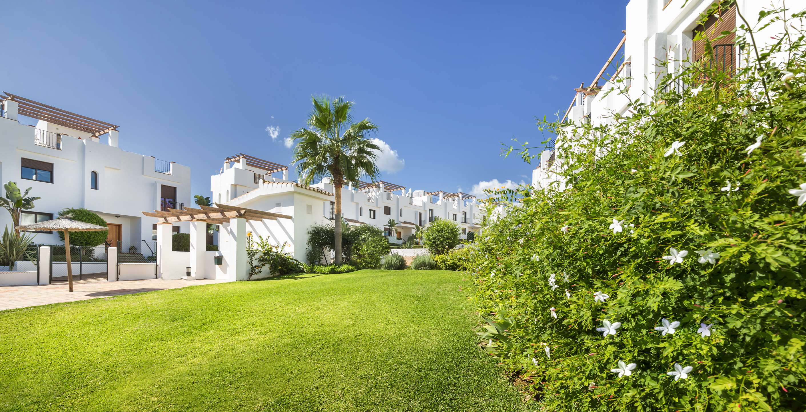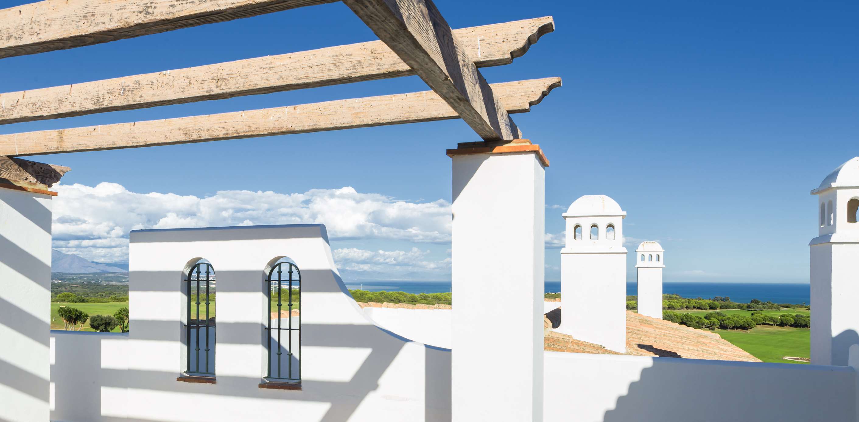 An exclusive complex with 2 and 3 bedroom apartments, as well as 3 and 4 bedroom terraced houses, running alongside the golf courses, adjacent to the new Alcaidesa Golf Clubhouse. It has three swimming pools and community gardens. It has fantastic views of the sea, golf courses and the Guadalquitón protected zone. Luxury quality properties with built-in domotic systems (intelligent home)