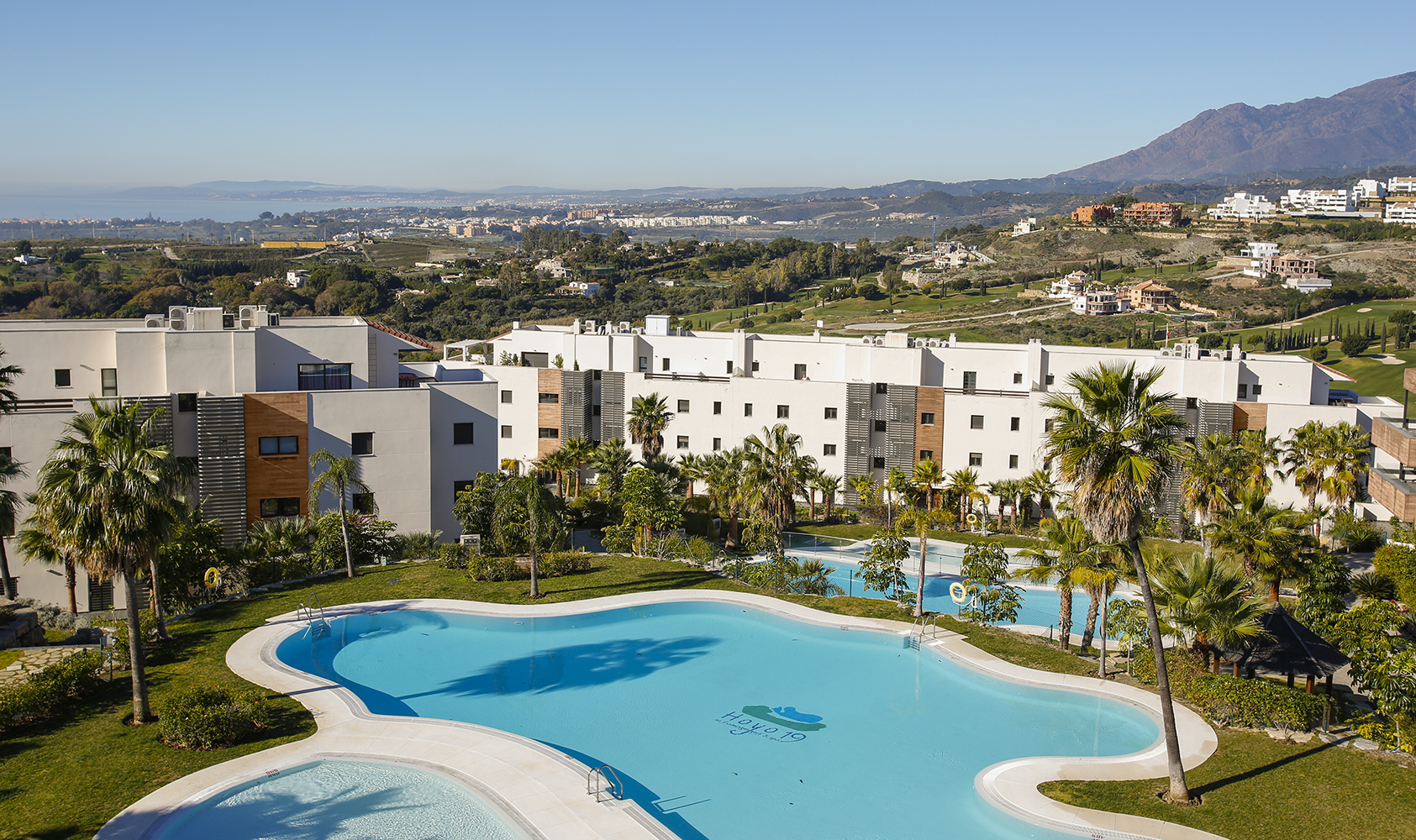 Hoyo 19 residential area is pure design. It is a private enclosure that provides peace of mind for your family with a security entrance guarded by a concierge. It consists of 4 buildings with panoramic views of the sea, mountain and golf courses known for their well-kept landscaping. It has spacious communal areas, with large playgrounds and spots for relaxing. The sunsets from the pool are truly fantastic. This exclusive resort also has two swimming pools with night lighting, a play area with a playground, a paddle tennis court, a golf driving range, dressing room and vast green areas of tropical landscaping. An enclosure with controlled access to enjoy with your family. Spacious designer homes, very bright, with 1, 2 and 3 bedrooms. All have large terraces with spectacular views of the golf courses or the Mediterranean Sea. The quality, aesthetic and modern finish of the materials are combined with total privacy. Each home has a garage and storage room.