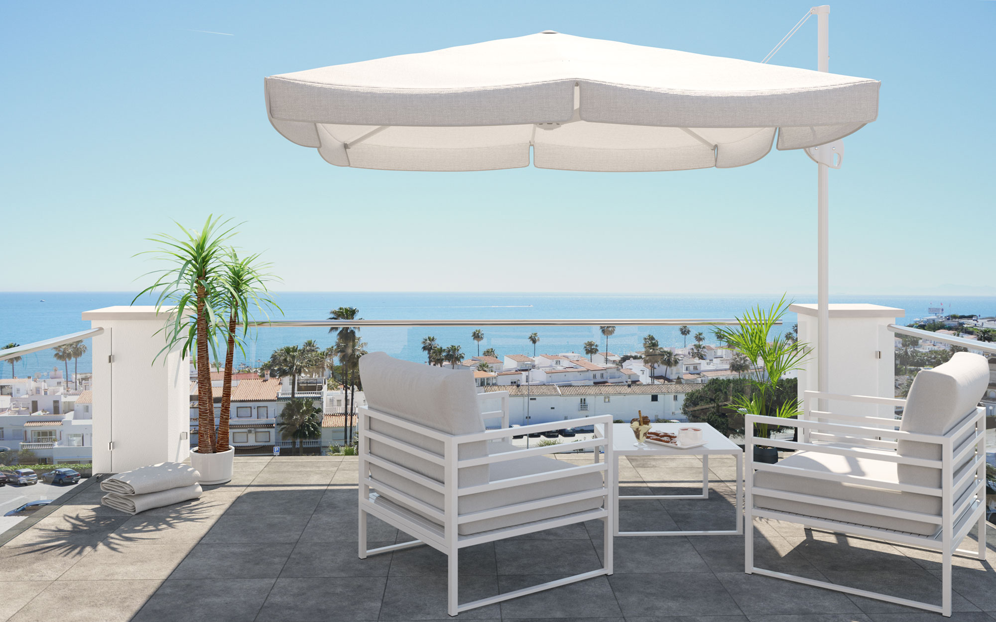 Stunning sea views, designed to live with all the comforts of an exclusive residential surrounded by golf courses, excellent restaurants and other services to enjoy all year.