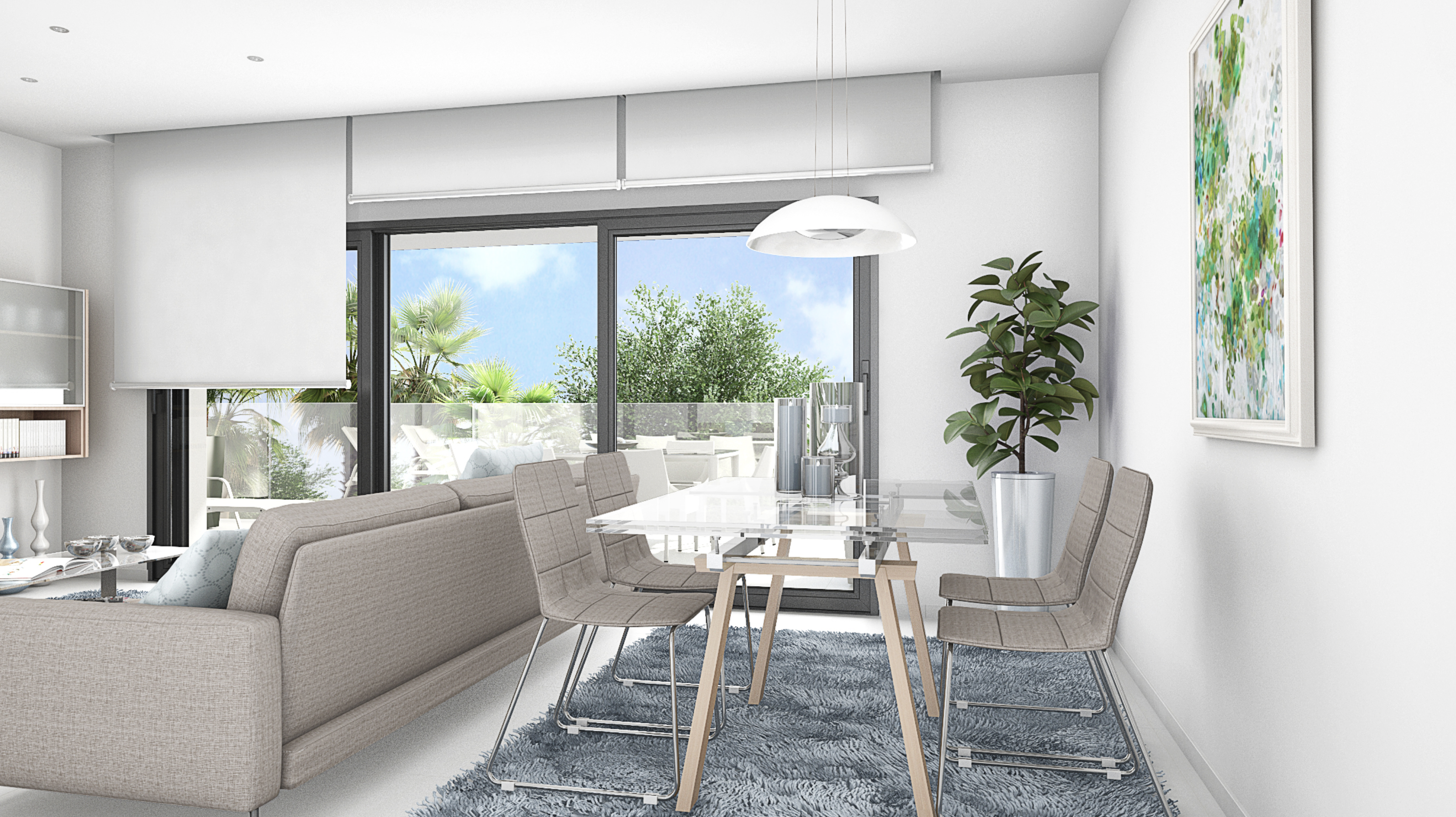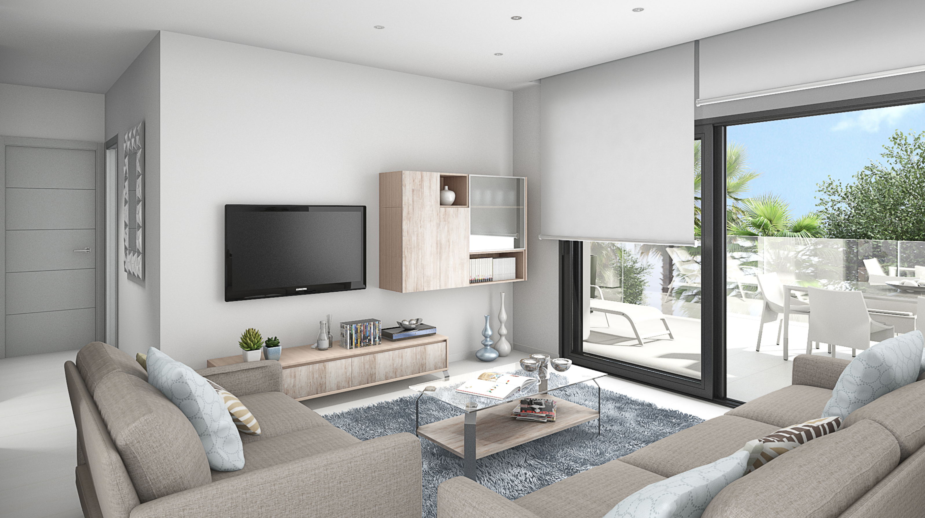 The development has a large central plaza of over 1,200 m2 with natural grass, trees and plants in addition to swimming pools, jacuzzis and a beach and pool area. Children will have a great time in the children’s play area within the fenced perimeter, guaranteeing you both safety and peace of mind.