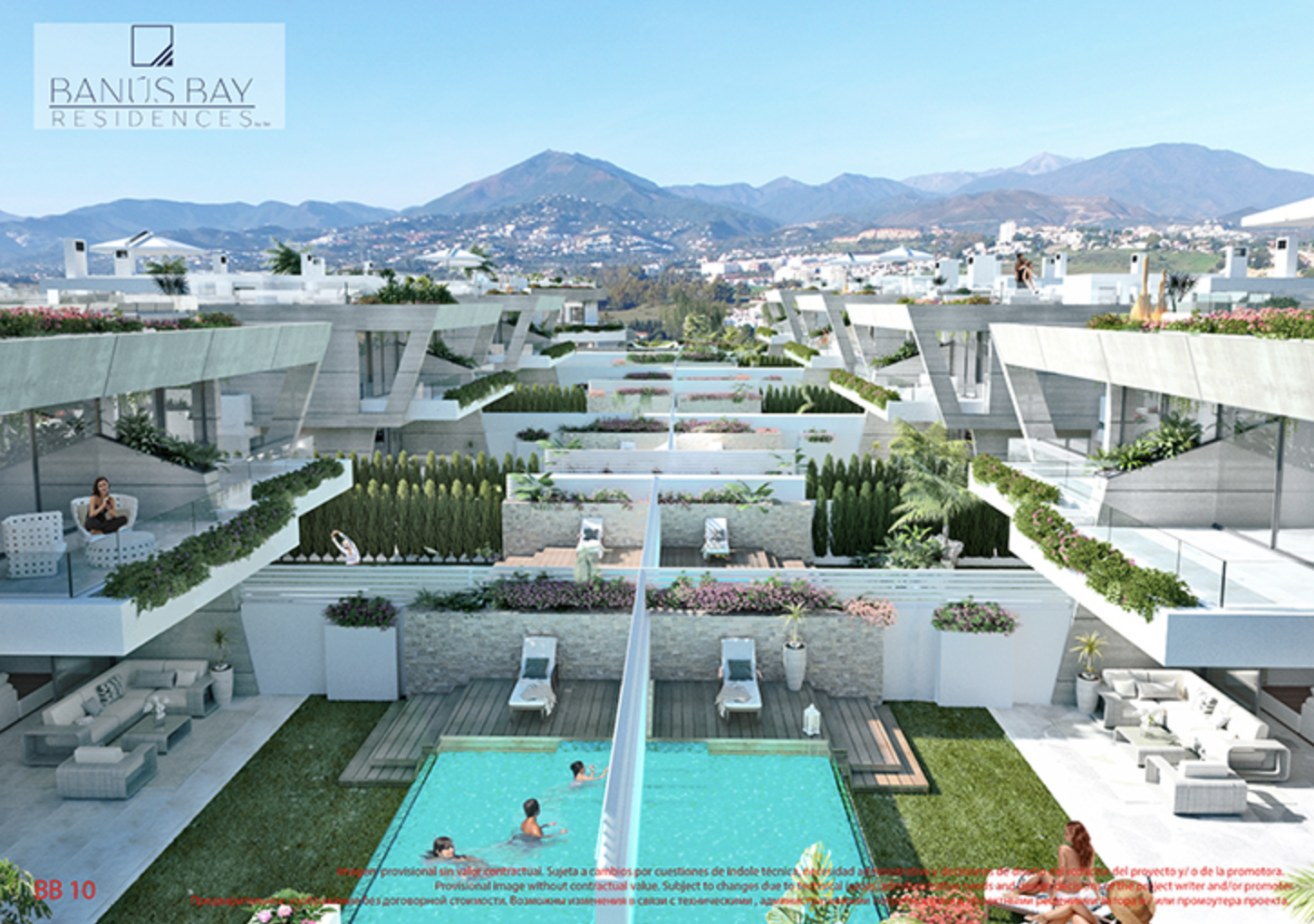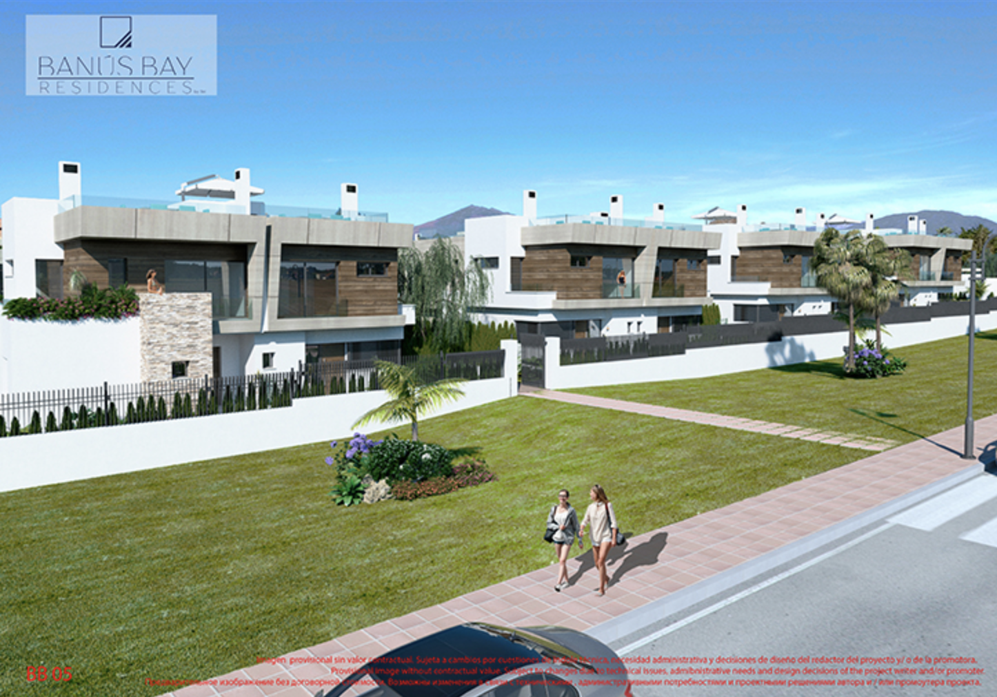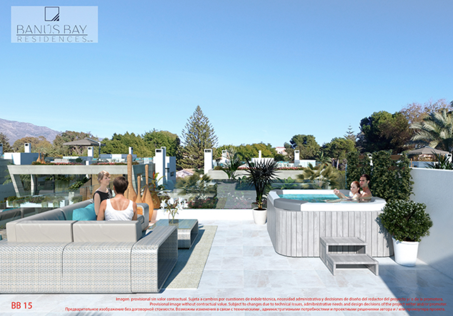 Banús Bay Residences is a residential of only 14 semi-detached villas and an independent villa, located in Puerto Banús, a privileged area of Marbella. The development has outdoor spaces with lush vegetation in line with its natural setting, a Malaga area that enjoys an enviable landscape quality. Its architecture, with large windows and bright rooms invites to enjoy the mediterranean lifestyle, specially from the private natural grass garden with swimming pool and solarium of the properties. Modern design homes built to maximize comfort and relaxation, and which layout focuses on detail, privacy and the views to the beautiful surroundings. The Residential Complex has video surveillance cameras and a maintenance and security service. Exclusive homes in a select enclave that boasts a great socio-cultural wealth, and is endowed with a wide variety of quality leisure options with infinite possibilities of enjoyment.