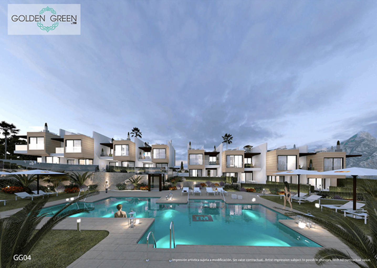 Golden Green is an exclusive project that offers large semi-detached single-family homes located in Nueva Andalucía - Marbella, next to Puerto Banús. It's a unique estate with only 8 homes that have all the essence of the Mediterranean style of living: south-facing, lots of light and spacious landscaped garden areas. The complex is completed with a swimming pool and heated whirlpool set in lovely surroundings with trees and plants. The estate has its own security and video surveillance system. It's one of the most attractive projects in this whole area of Spain.