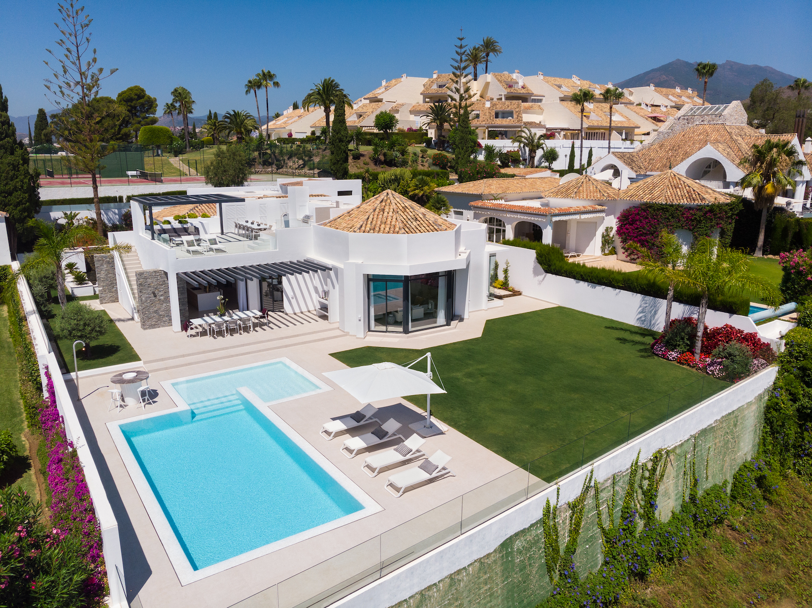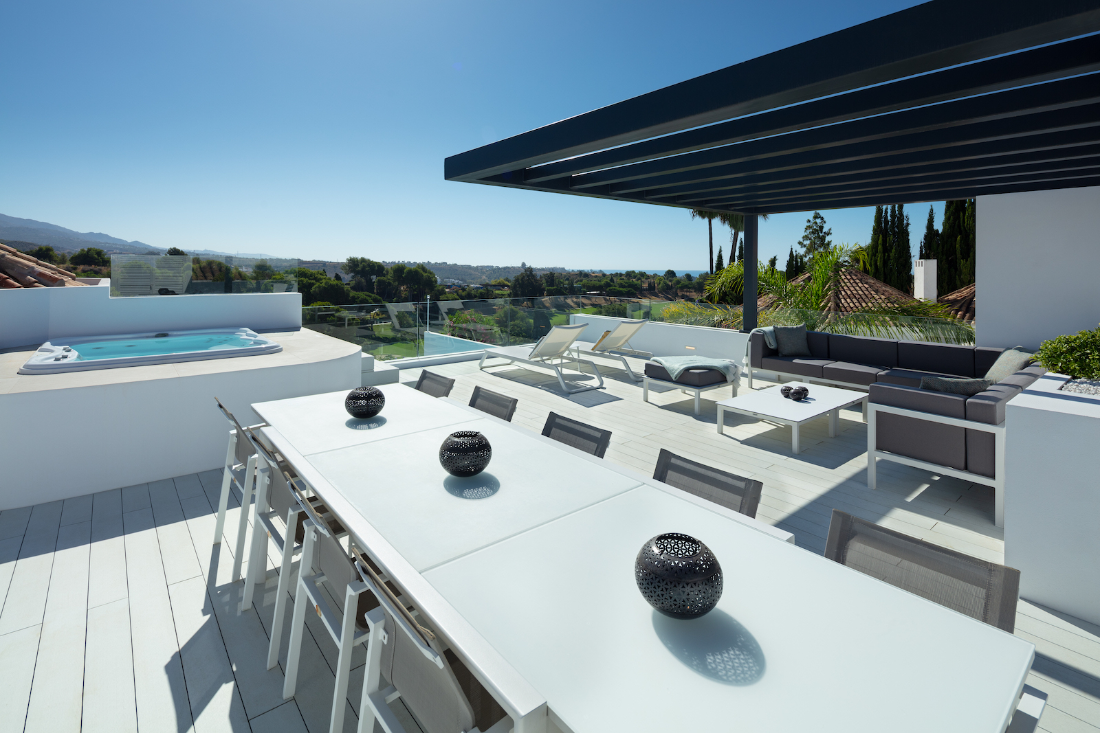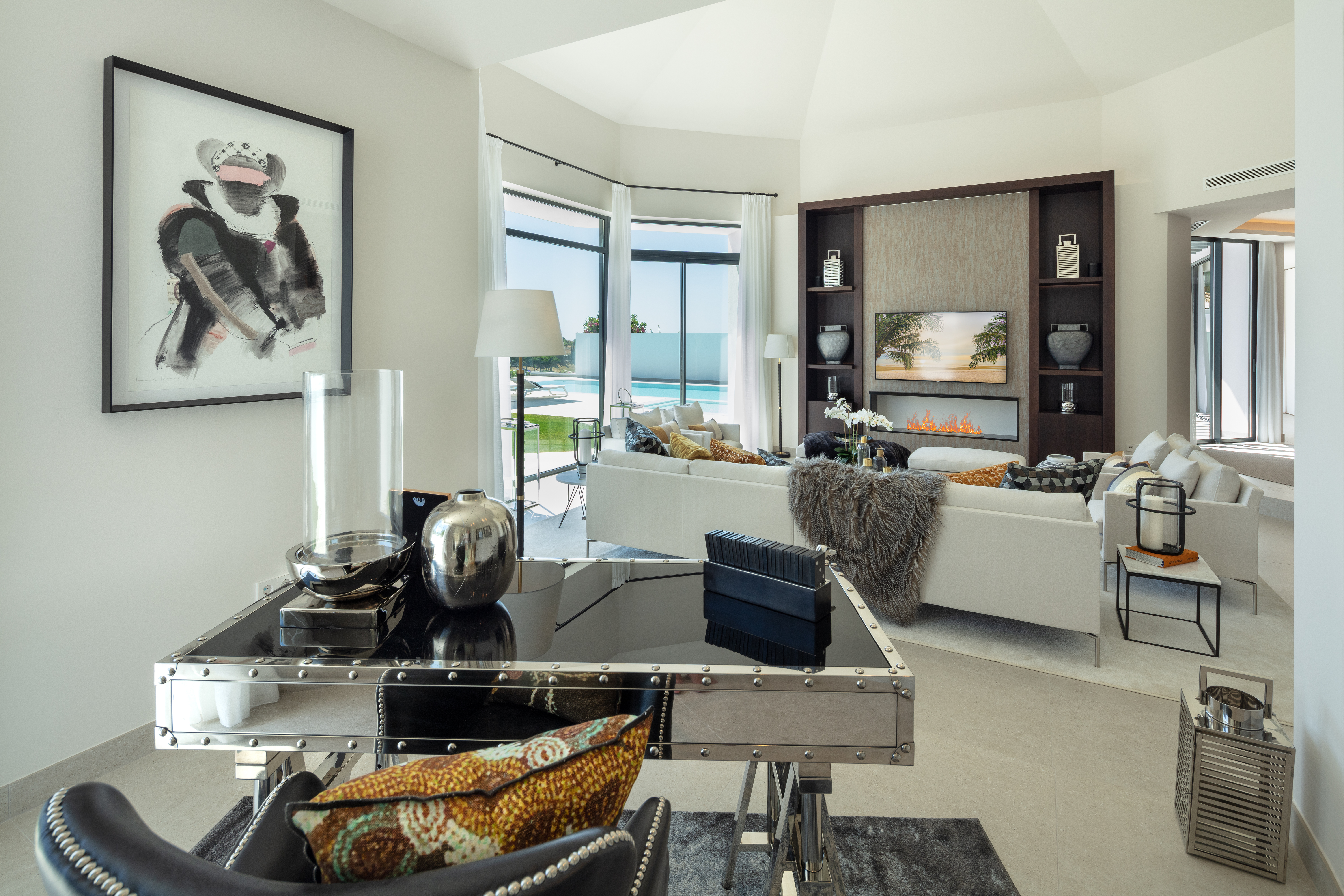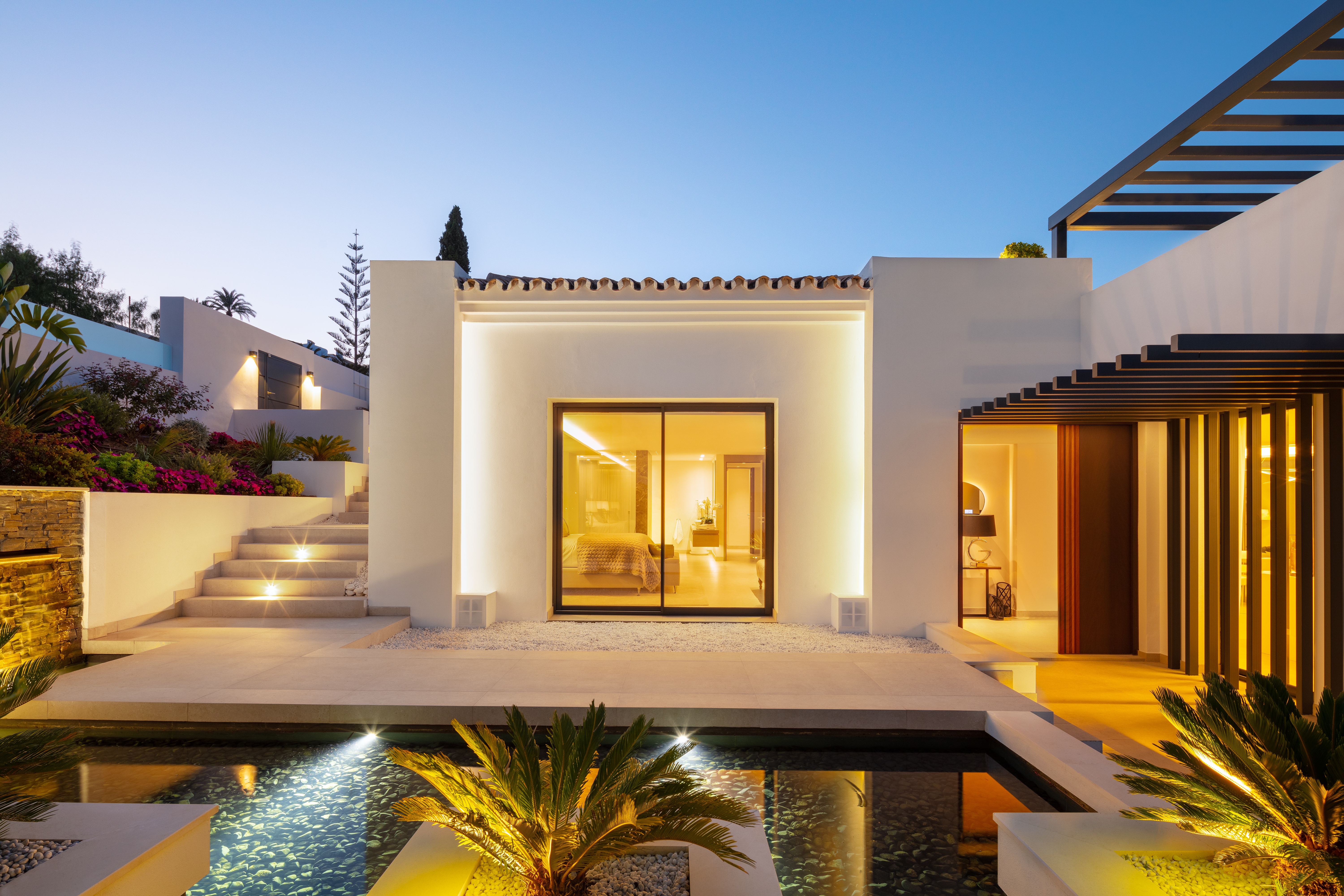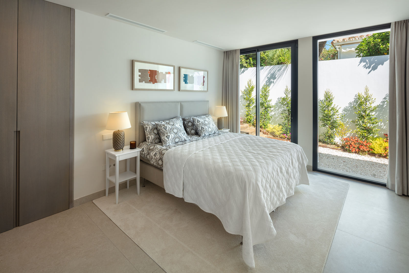 Luxury modern villa with a gorgeous grey and white colour scheme and hi-tech features throughout. The villa is bright and spacious with versatile accommodation including an en-suite bedroom completely separate to the main house. It comes fully furnished with premium furniture such as Eilersen and sliding door wardrobes in all bedrooms. The kitchen has a stunning contemporary style with a breakfast bar and Gaggenau appliances.