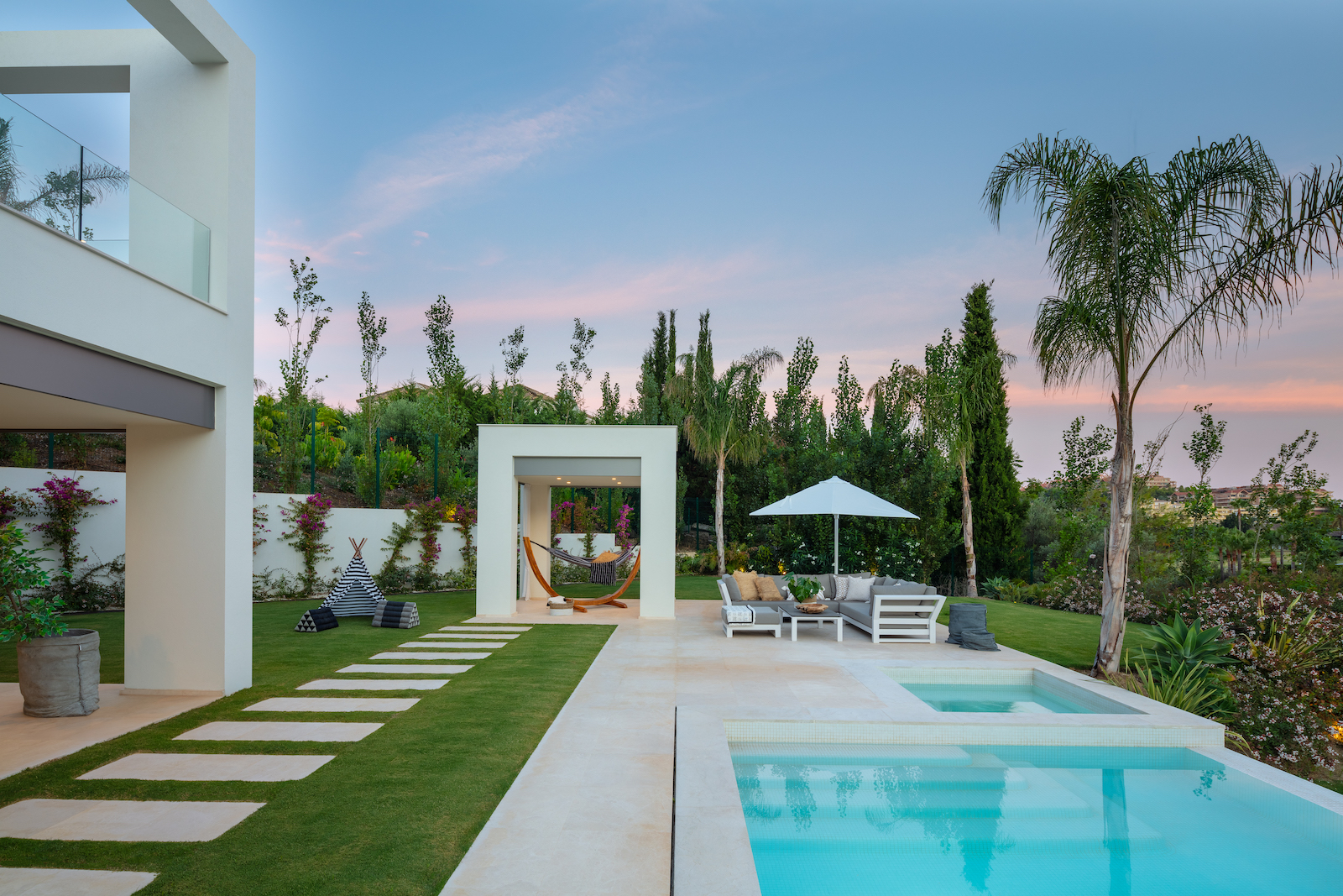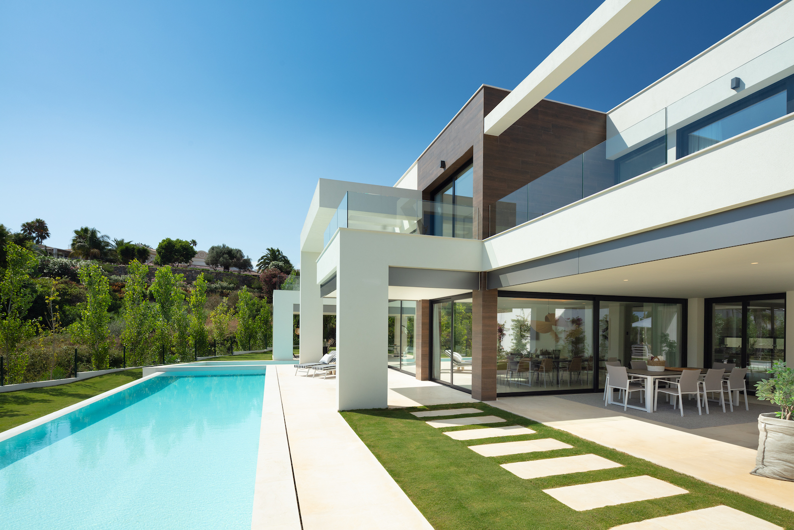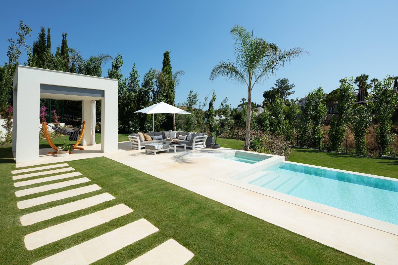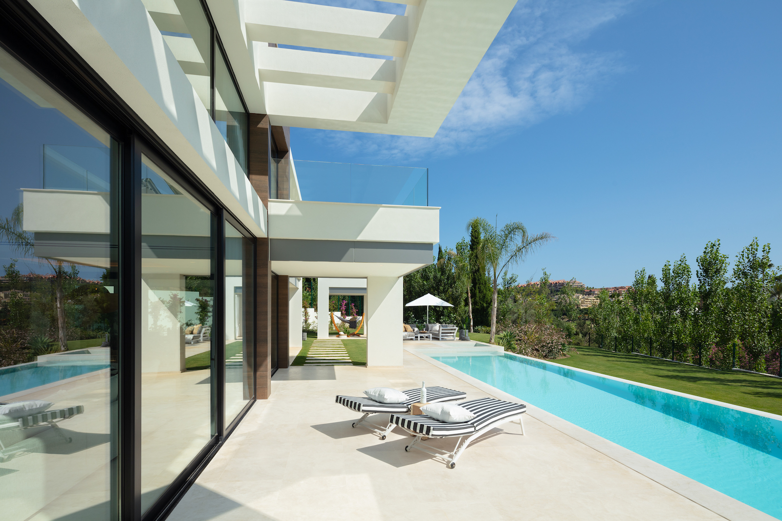 This impressive villa has been designed to combine high end modern finishes with comfortable every day living. It has large windows to attract light. State of the art villa in the very best address in Nueva Andalucia.