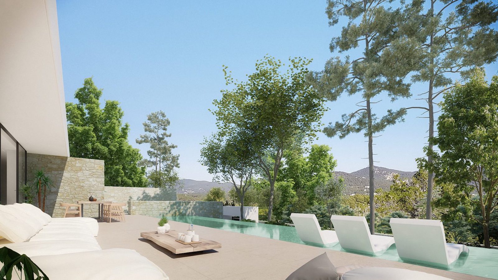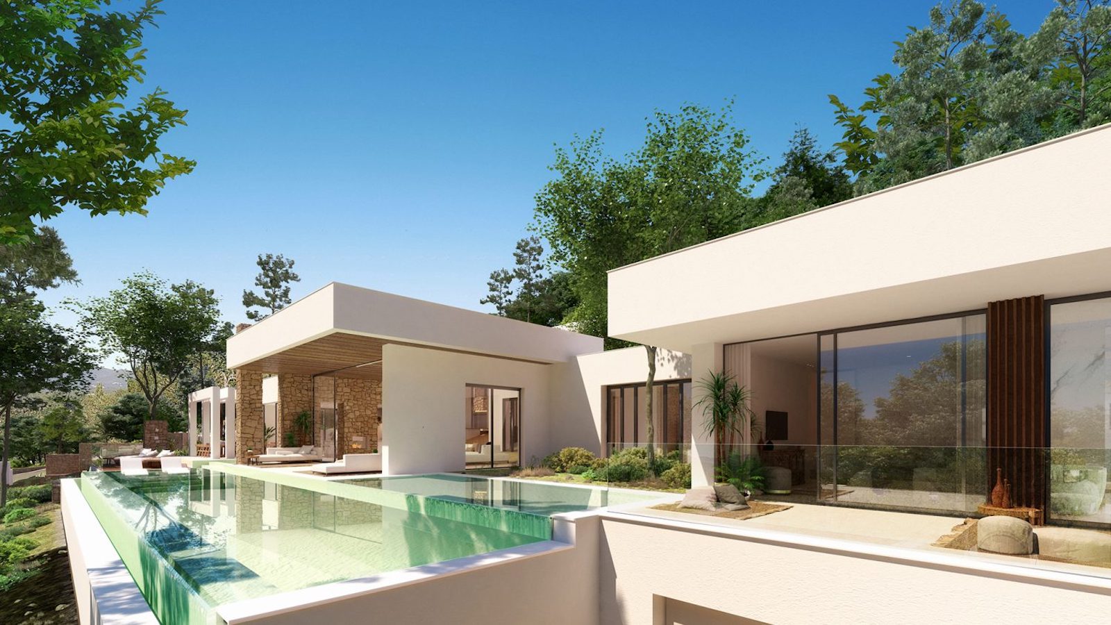 Each property sits on a landscaped plot of at least 1,soom2 with complete privacy from neighbouring residences. The building density has been kept minimal so that each villa magically coexists with its woodland surrounding in this beautiful and privileged environment.