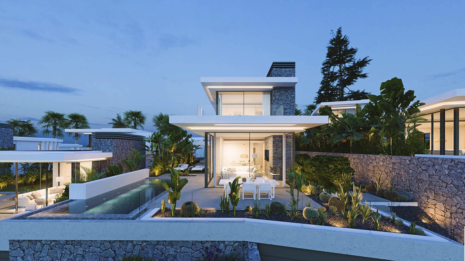 Las Atalayas de Abama is an exclusive group of ten detached luxury villas boasting stunning sea views. These extraordinary homes designed by Corona-Amaral Arquitectos sit on a terraced landscape ingeniously engineered to offer both privacy and ease of access for owners.