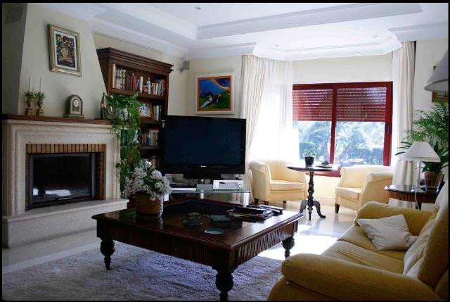 On the main floor we find; an elegant double-height entrance hall, a spacious and bright main living room with fireplace, a second independent dining room also with fireplace, large kitchen with dining room and laundry room from where you have direct access to the covered outdoor porch and barbecue area.