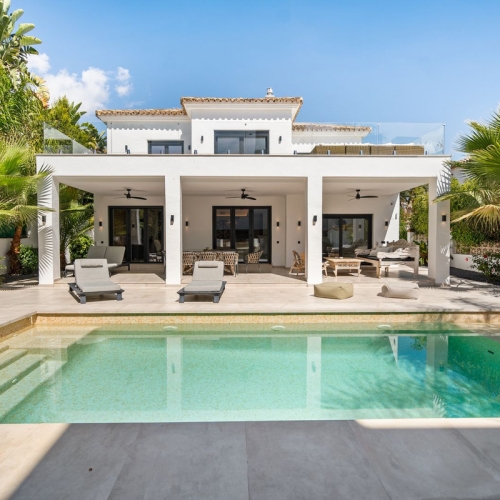 Impressive independent villa with very large spaces built on one floor and located near the center of Marbella.
