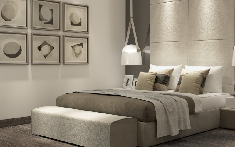 Master bedroom suite with luxury en suite bathroom and terrace access over the pool towards the sea and golf. Two further bedrooms both with en suite bathrooms. Gallery hallway overlooking the lounge area below.