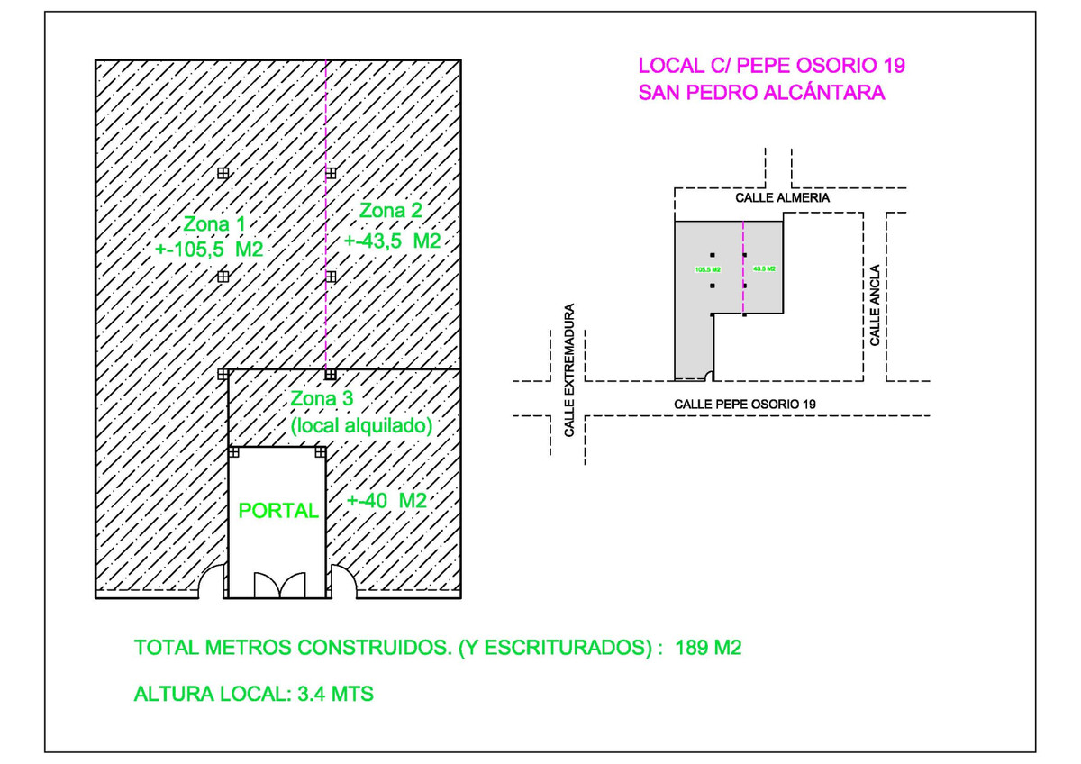 San Pedro Alcántara, commercial premises with garage area. Located in strategic commercial area, a few meters from the new Boulevar. The place has access by two streets. High potential in profitability or exploitation for any type of business. Possibility of change of use of commercial to housing. GREAT OPPORTUNITY TO PURCHASE.