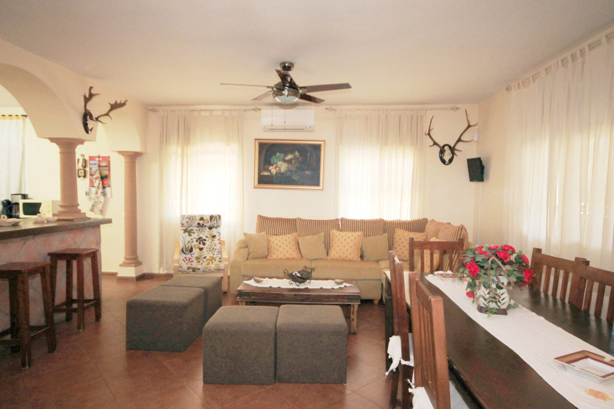Opportunity at Bargain price! Lovely country house set between the picturesque Andalusian villages of Monda and Guaro, just a few kilometres away from Marbella, with stunning views over the countryside and the beautiful mountains of the Sierra de Las Nieves. A gated entrance drive leads up to the main house, the guest apartment and to a large patio with tropical roof, summer kitchen with bar and barbecue. The property comprises on the ground floor an entrance hall, a master suite, a spacious kitchen opening onto a spacious living/dining room with fireplace with direct access to the large terrace and the pool area. Downstairs, there are 4 more spacious bedrooms, a bathroom and with a spacious lounge with fireplace.