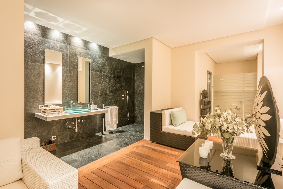 Outside area with a spacious swimming pool, outstanding water objects and mature subtropical landscaped gardens keep the same style and evoke the feeling of beauty and harmony.