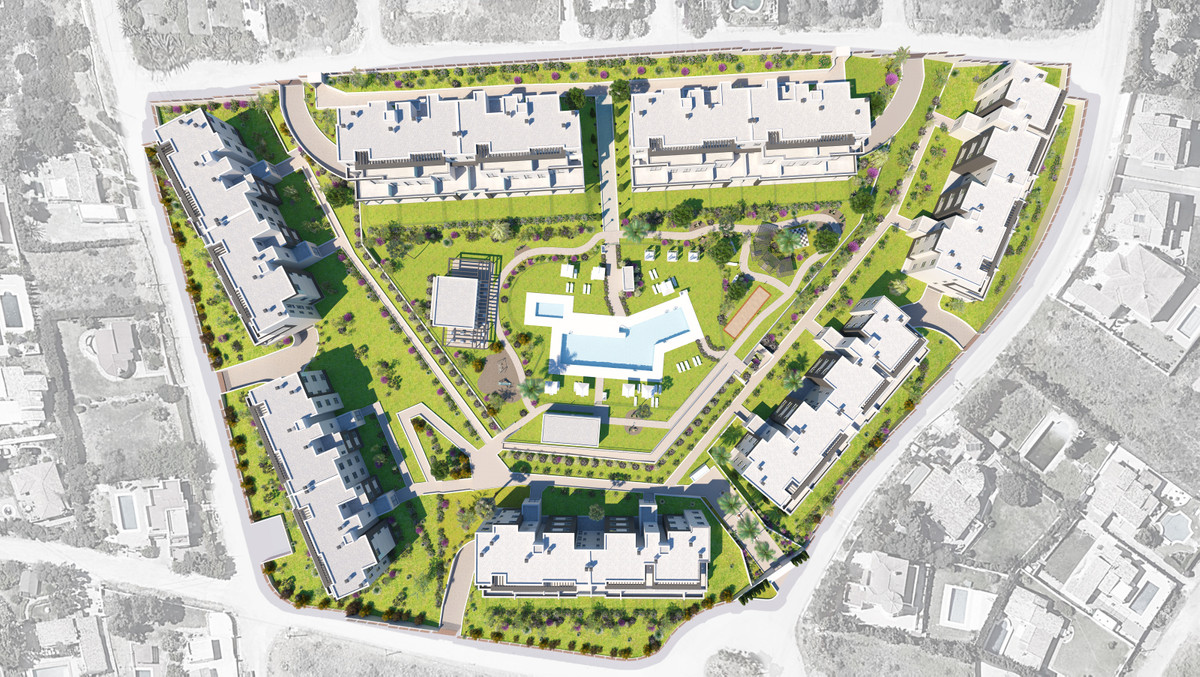 Exklusivt slutet område med 115 rymliga bostäder och takvåningar med 1, 2, 3 och 4 sovrum, garage, förråd, generösa terrasser och privata trädgårdar på markplan – i en oöverträffad naturmiljö med fantastisk utsikt över hav och berg.