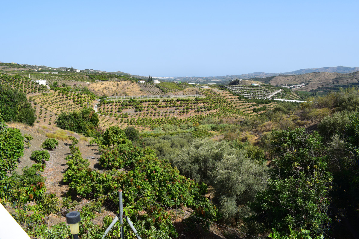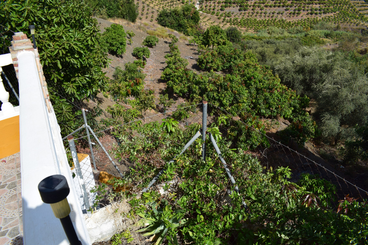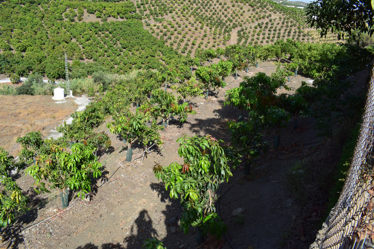 8,000 m2 irrigated farm with mango production. The villa has 160 m2 with a 60 m2 solarium, 4 bedrooms all with two windows or balconies (2 on the ground floor and another 2 bedrooms on the upper floor), 2 full bathrooms with window, large living room with fireplace and very large kitchen with all the appliances plus another fireplace and with direct access to the plot where we find an 80 m2 porch and another bathroom plus a storage room, parking area for 5 cars and the private pool with spectacular views of the valley of Velez Malaga to the coast of Torre del Mar, you can even see the sea. Without a doubt, the farm is located in an idyllic area where you can enjoy the countryside and tranquility. Access to the farm is by a private concrete road of 1 km, from Vélez Málaga it takes us 15 minutes to reach the farm. There is also another 1,000m2 plot with a 400 m3 water tank, there is also a reserve cistern under the pool and the entire farm has automatic irrigation for the Mangos. It is sold with all the furniture and all the constructions are registered and legal, IBI is paid for the villa € 562.