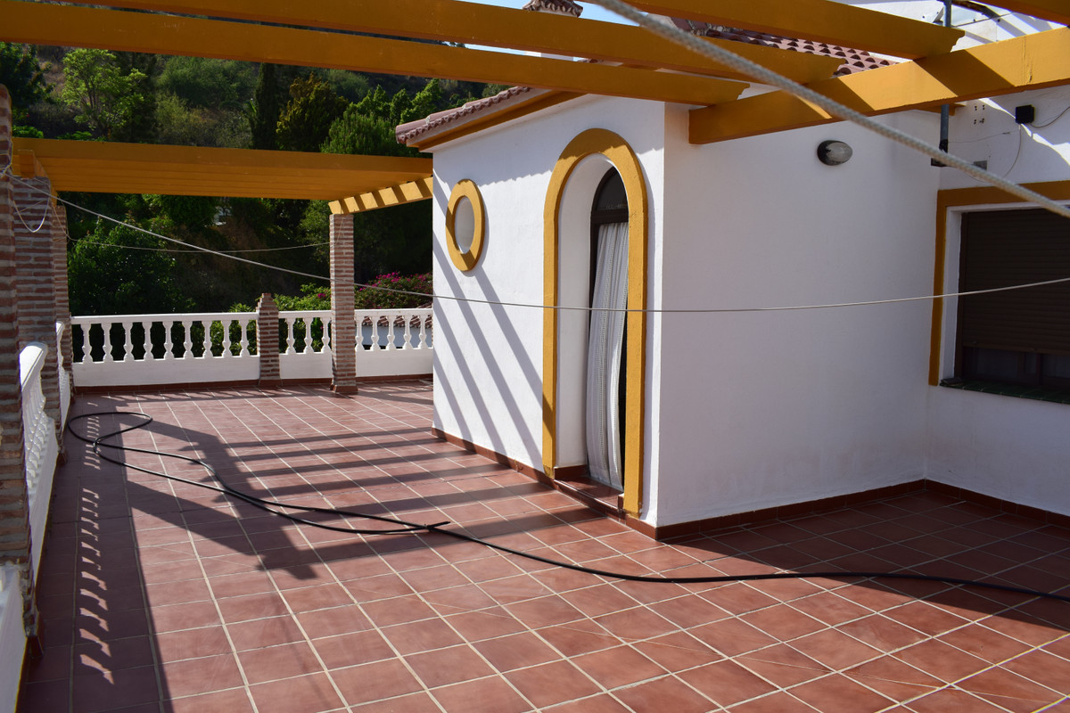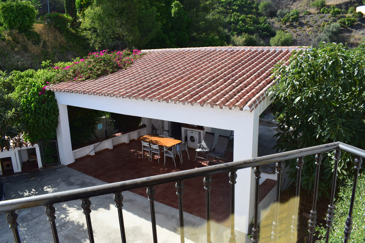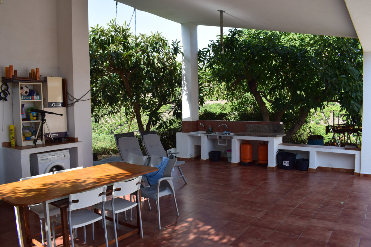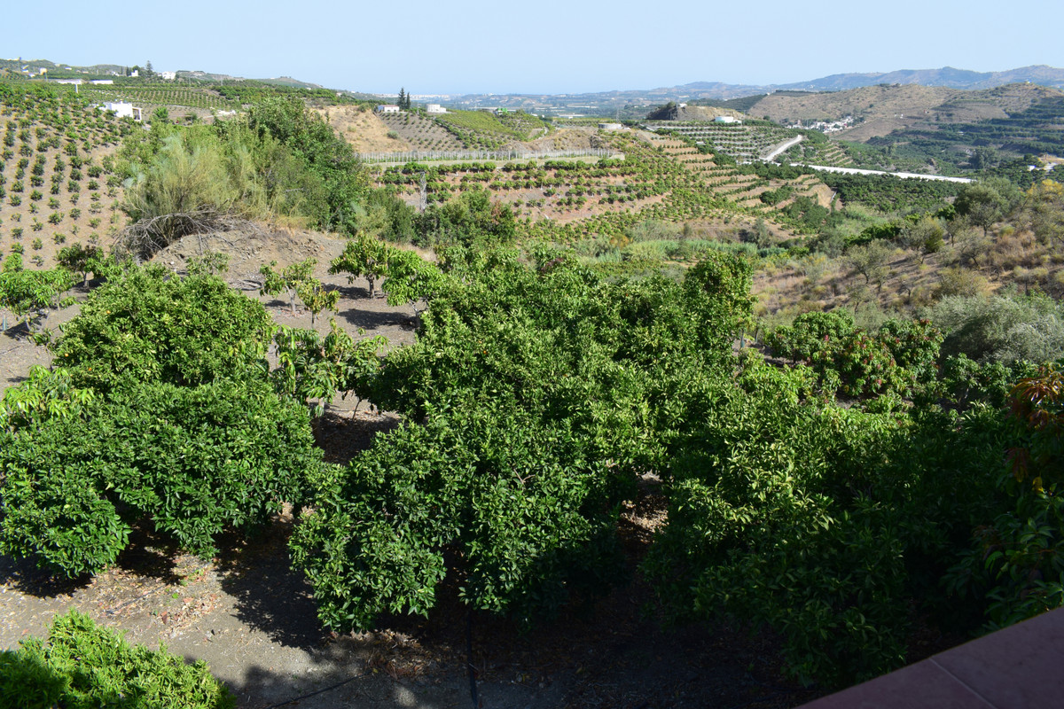 8,000 m2 irrigated farm with mango production. The villa has 160 m2 with a 60 m2 solarium, 4 bedrooms all with two windows or balconies (2 on the ground floor and another 2 bedrooms on the upper floor), 2 full bathrooms with window, large living room with fireplace and very large kitchen with all the appliances plus another fireplace and with direct access to the plot where we find an 80 m2 porch and another bathroom plus a storage room, parking area for 5 cars and the private pool with spectacular views of the valley of Velez Malaga to the coast of Torre del Mar, you can even see the sea. Without a doubt, the farm is located in an idyllic area where you can enjoy the countryside and tranquility. Access to the farm is by a private concrete road of 1 km, from Vélez Málaga it takes us 15 minutes to reach the farm. There is also another 1,000m2 plot with a 400 m3 water tank, there is also a reserve cistern under the pool and the entire farm has automatic irrigation for the Mangos. It is sold with all the furniture and all the constructions are registered and legal, IBI is paid for the villa € 562.