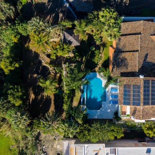 The villa also has a large gym, a large pool, which is located in front of a covered area equipped with a third kitchen with oven and barbecue, this construction has double toilets.