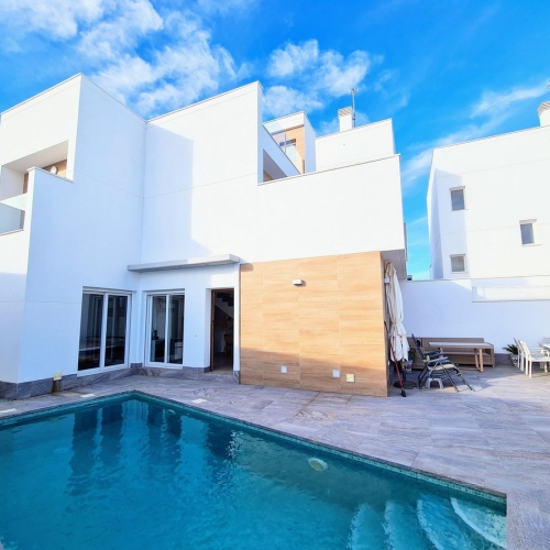 In the basement of the villa, we will find a living room with an open kitchen, with the possibility of installing a home cinema, on this floor we will find a bathroom, and a bedroom, ideal for the service personnel.