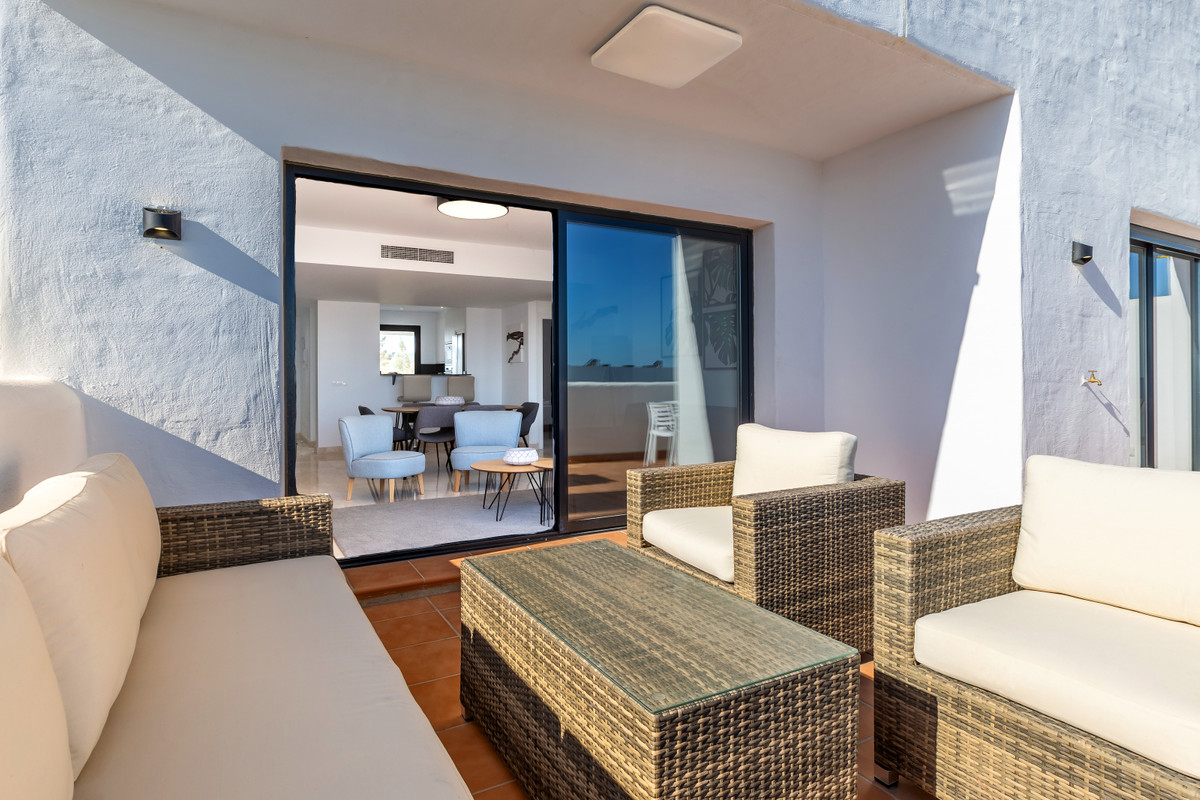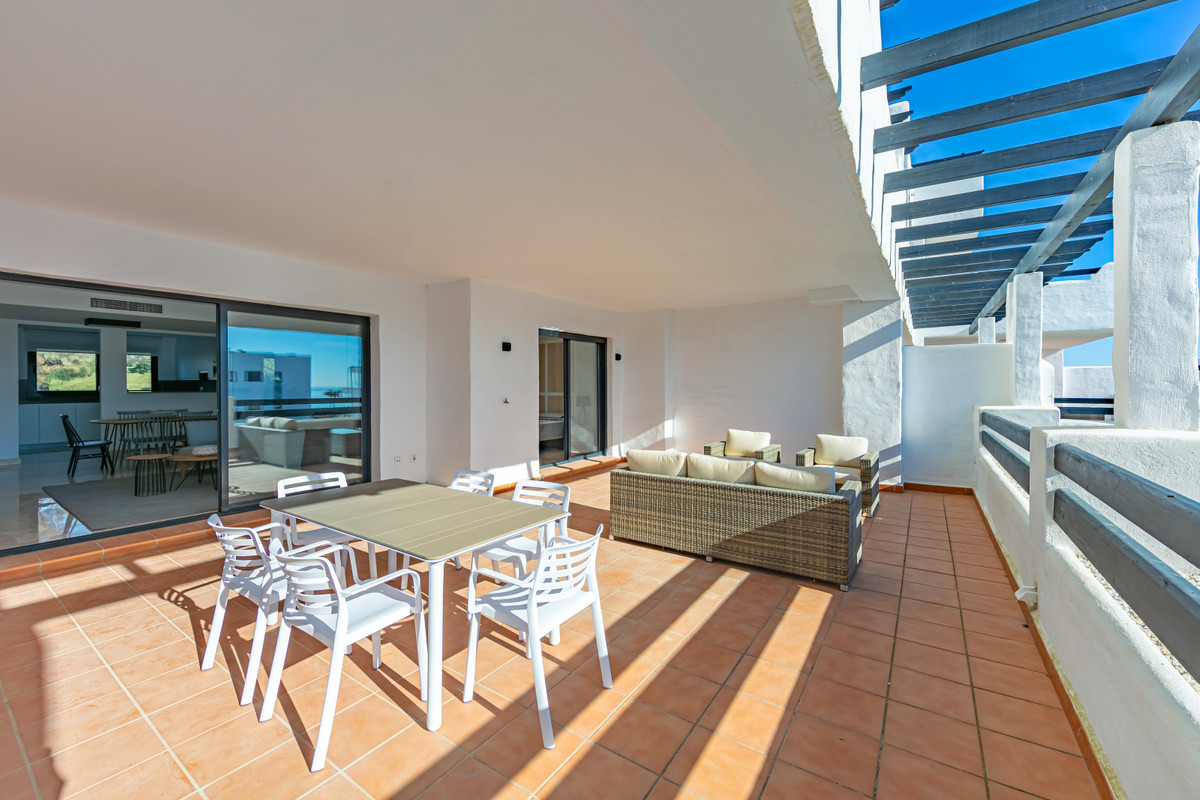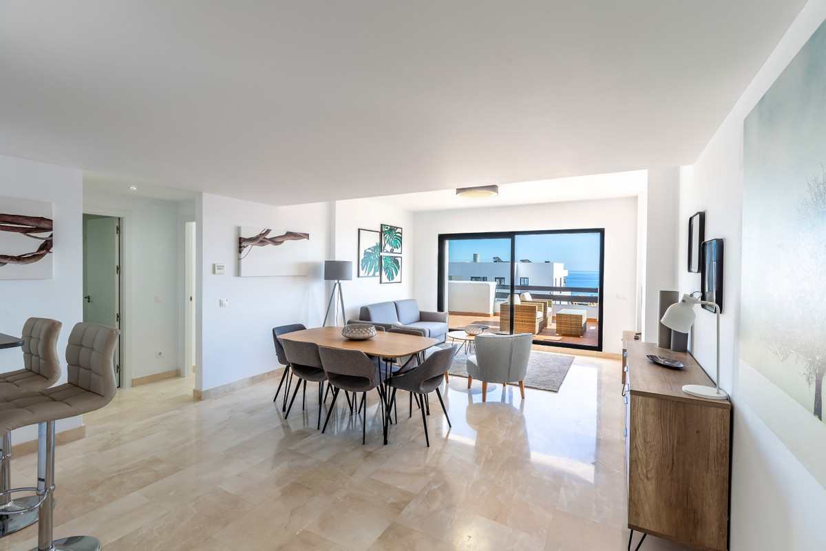 Exclusive APARTMENTS & PENTHOUSES located in Bahia de Casares, surrounded by one of the most prestigious golf courses in the Costa del Sol, with AMAZING VIEWS OVER THE SEA AND GOLF COURSES from its LARGE TERRACES south west facing. Walking distance to the marvellous beaches of Casares Playa, 10 minutes quiet walk to the commercial area of Sabinillas, and Puerto de la Duquesa. Only 20 minutes away from Gibraltar airport and 50 minutes from Malaga International airport. This property is within a private residential complex, equipped with 24h security cameras, 2 swimming pools, gardens, viewpoints, and indoor and outdoor gym. Built with LUXURY QUALITIES, kitchen furnished with home appliances included, air conditioning (cold-heat) fully installed with remote control, marble floors, and high quality stoneware, fully fitted wardrobes, security door and community internet. Parking and storage room, which you can access directly from the lift, are included in the price. Great investment opportunitty. Must be seen!