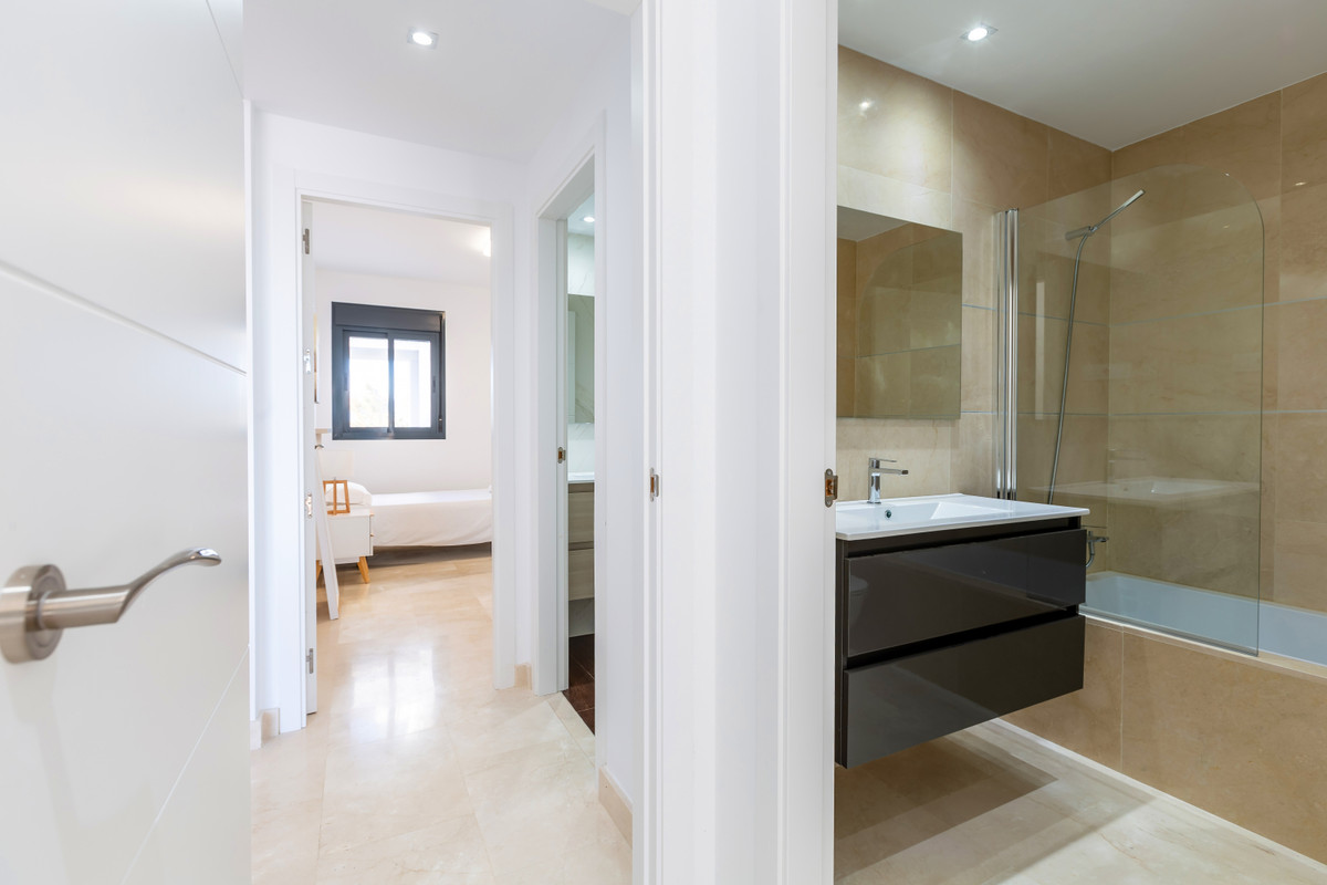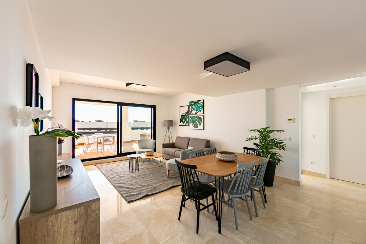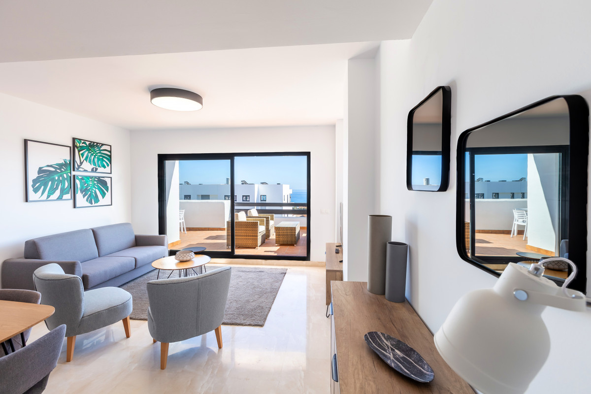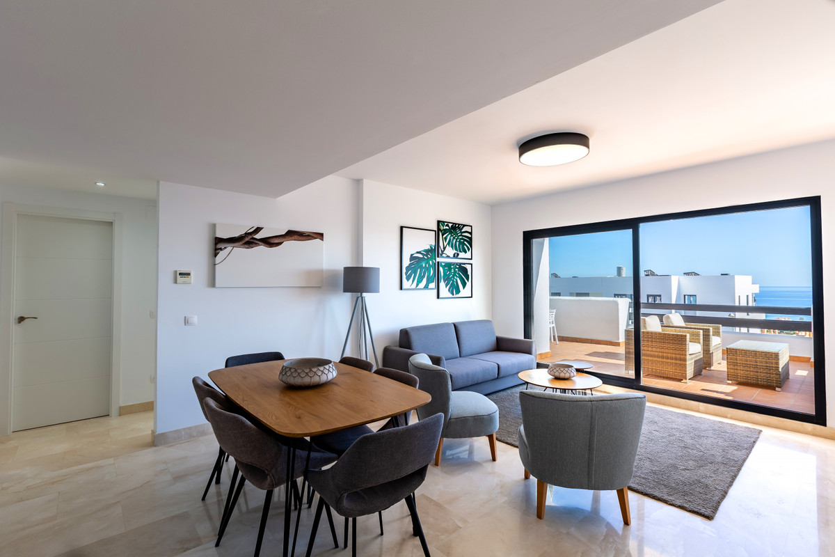 Exclusive APARTMENTS & PENTHOUSES located in Bahia de Casares, surrounded by one of the most prestigious golf courses in the Costa del Sol, with AMAZING VIEWS OVER THE SEA AND GOLF COURSES from its LARGE TERRACES south west facing. Walking distance to the marvellous beaches of Casares Playa, 10 minutes quiet walk to the commercial area of Sabinillas, and Puerto de la Duquesa. Only 20 minutes away from Gibraltar airport and 50 minutes from Malaga International airport. This property is within a private residential complex, equipped with 24h security cameras, 2 swimming pools, gardens, viewpoints, and indoor and outdoor gym. Built with LUXURY QUALITIES, kitchen furnished with home appliances included, air conditioning (cold-heat) fully installed with remote control, marble floors, and high quality stoneware, fully fitted wardrobes, security door and community internet. Parking and storage room, which you can access directly from the lift, are included in the price. Great investment opportunitty. Must be seen!