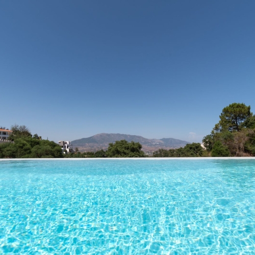 Otrolig lyxvilla i La Mairena med helt fantastiska utsikter över bergen! Enastående villa byggd till högsta standard och omgiven av vacker kork och ek träd. Villan består av 3 våningar. Mellersta våningen är på gatunivå och består av köket, matsal, kontor, stort vardagsrum, utgång till en terrass och dessutom 2 sovrum både med egna badrum. På översta våningen ligger ett enormt sovrum med eget badrum och utgång till en stor terrass med otroliga utsikter över bergen. På lägsta våningen finns det en bar och inomhuspool med stor glass fönster som tittar ut över bergen. Också beläget på först våningen finns en lägenhet med 2 sovrum, vardagsrum, kök och egen ingång. Villan har en stor underbar trädgård och utomhuspool. Lyx mitt i naturen! La Mairena ligger på bergstoppen precis ovanför kustorten Elviria på Costa del Sol, mellan Marbella och Fuengirola. Det speciella med området La Mairena är naturen! Det är ett exklusivt och skyddat bergsområde med kork, ek och tallskogar som omgiver de få bostäder som har byggts här. Bara 5% av La Mairena får byggas vilket garantera en skyddat och lugnt naturområde. Detta är ett område för alla som söker sig till naturen och lugn och ro men som ändå vill vara nära till kusten. La Mairena ligger nämligen bara e 7 minuters bilresa till orten Elviria på kusten, och 20 minuter till Marbella stad! Det finns många internationella skolor i området och på 7 minuter kommer till kusten med en mängd restauranger, banker, apotek, golfbanor mm