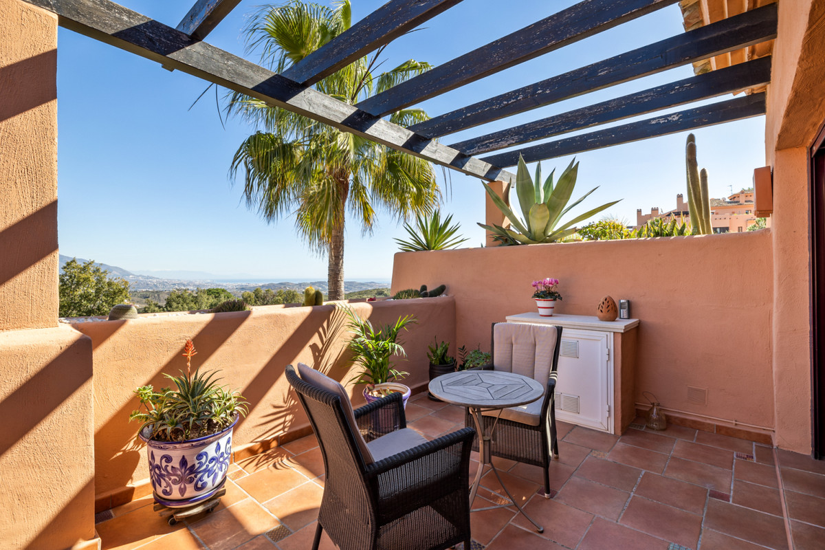 Spacious duplex penthouse with three bedrooms and two bathrooms located in the mountains above Marbella, with stunning scenic views from inside the home and not least from the home three terraces.