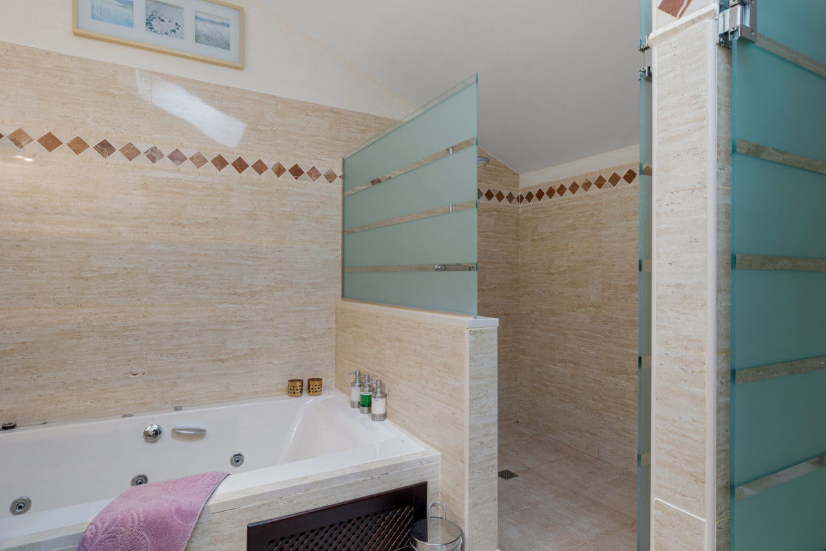The penthouse apartment is located on the first level in a small apartment block with five apartments and can be accessed either by elevator or a single staircase. The community is a very safe, private and closed society.
