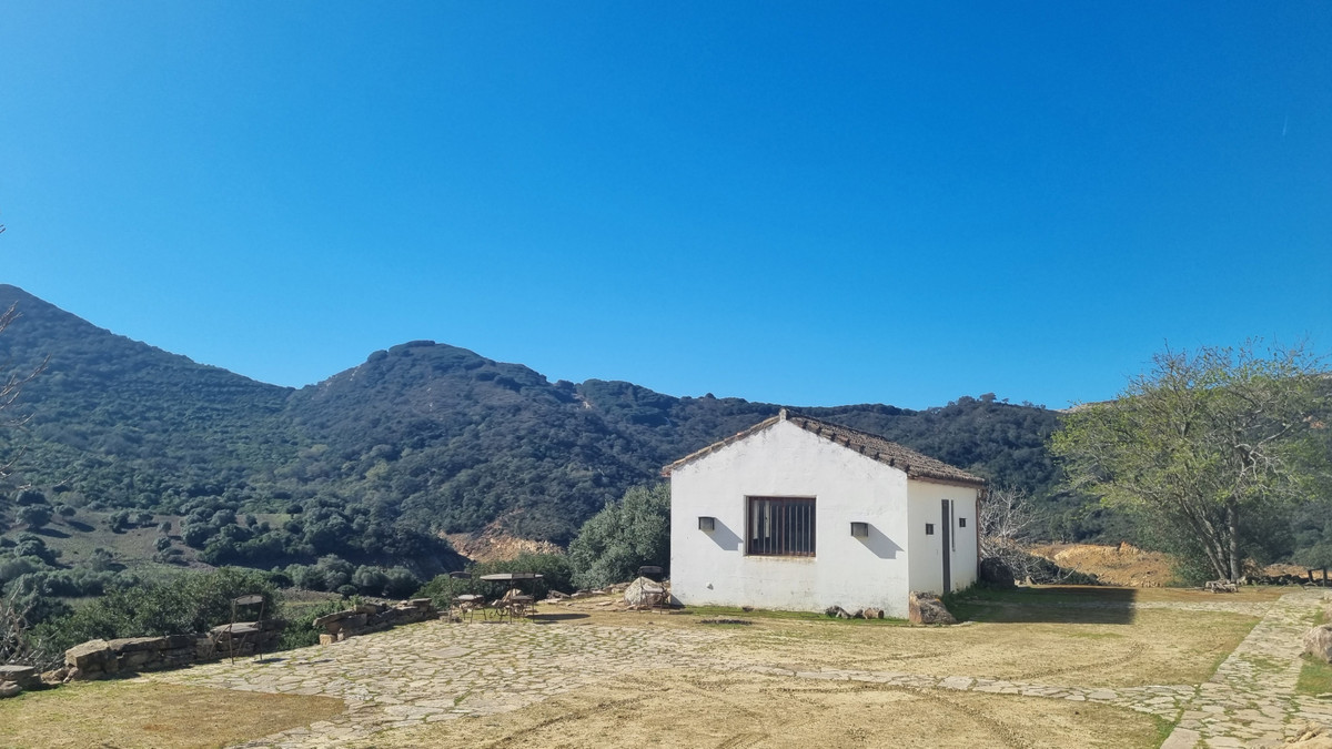 Detta är det mest magiska landet till salu i Castellar de la Frontera med utsikt över sjön och det gamla slottet Castellar. Marken är 280.000m med ett hus, ett sekundärhus och förråd på totalt 200m. Det är möjligt att utöka detta till en fastighet på 400m. Huvudbyggnaden har 2 sovrum och 2 badrum med eget badrum, kök i öppen planlösning och stort vardagsrum med utsikt över landet. Det sekundära huset kan göras till en 2 sovrum eller en studiolägenhet. Denna fastighet och mark har enorm potential för alla som letar efter en ekologisk turismverksamhet. Stugor kan byggas på marken eller jurtor för en helt naturlig upplevelse. Den här egenskapen lämpar sig också för en reträtt eller helt enkelt för en familj som vill koppla av från världen omgiven av natur. Det finns utsikt över sjön och slottet från huvudbyggnaden samt de omgivande kullarna och ön. Marken har sina egna rådjur och medan vi var där såg vi örnar, gamar, vildsvin samt fjärilar...överallt!