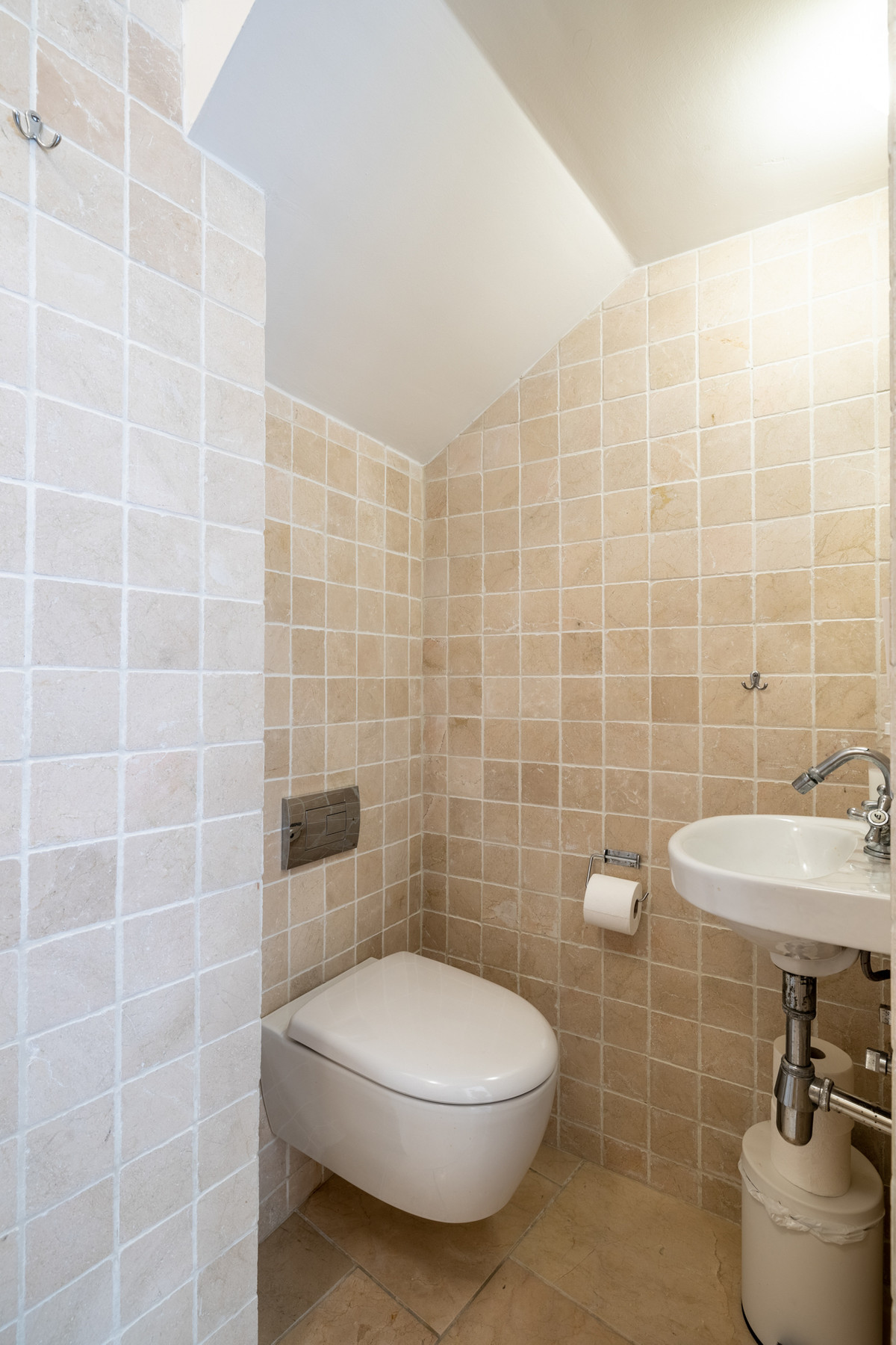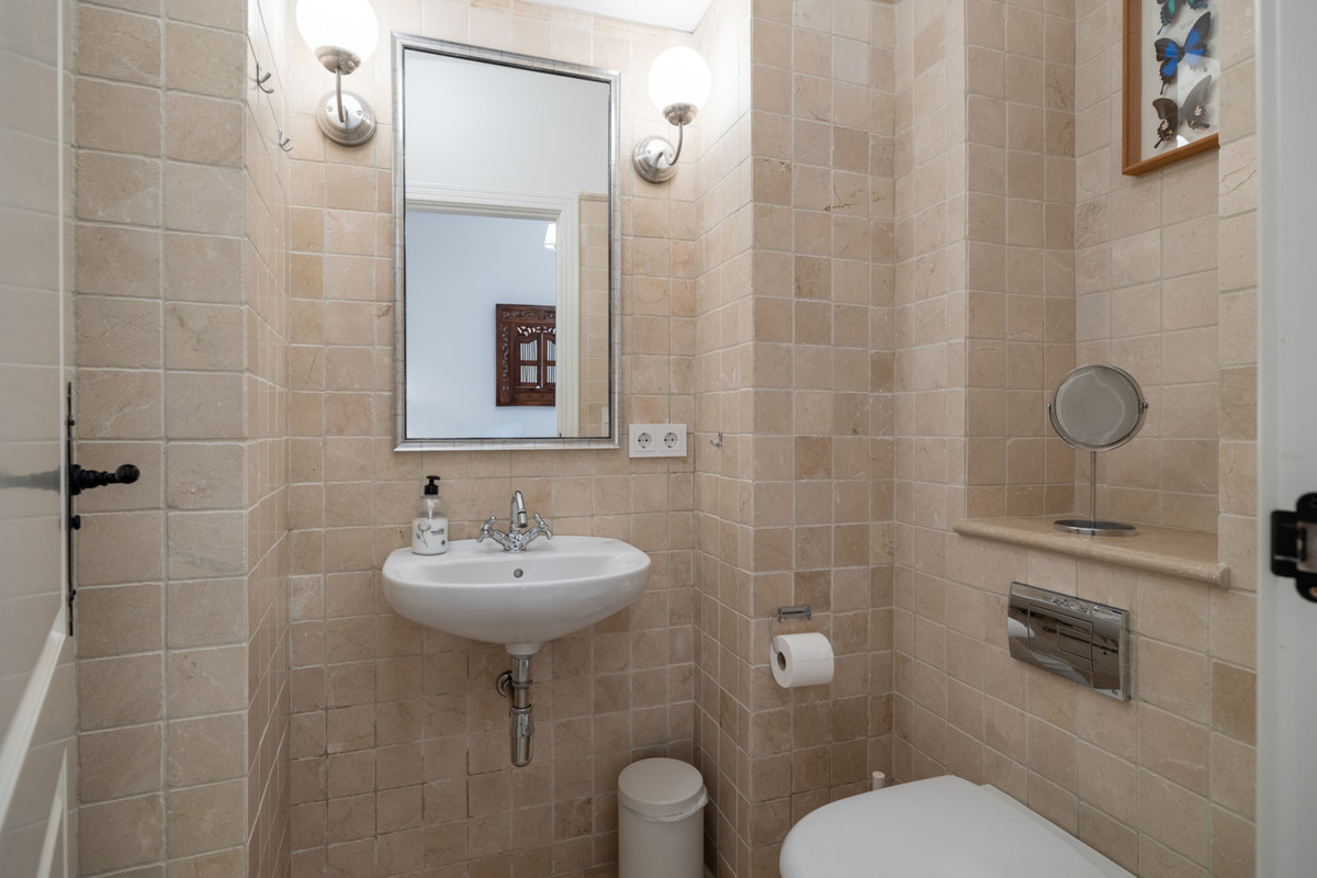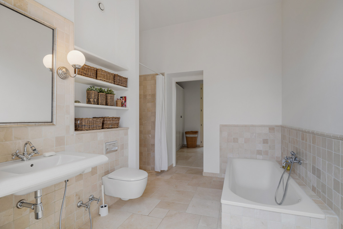 A typical Andalusian entrance welcomes you with 3 bedrooms and 3 bathrooms ensuite. There is also a tiled indoor patio with a fountain and plants to have a drink and relax from a busy day.