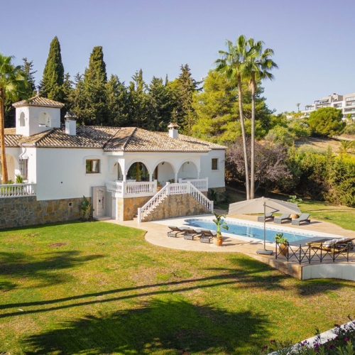 ndependent Villa in Estepona – Costa del Sol | 6 Bedrooms | 3 Bathrooms | Built: 200 m² | Terrace: 200 m² | Plot: 3500 m² – Discover this spectacular independent villa located in a privileged natural setting on the outskirts of Estepona. This exclusive, recently renovated property is perfect for those seeking privacy, space, and luxury on the Costa del Sol. Location: Suburban / Countryside, close to the city, south-facing. Condition: Excellent, recently refurbished. Spacious interiors and exteriors, fully furnished. Exteriors and Views: Private pool, 25,000 m² private garden, 200 m² terrace with panoramic views of the sea, garden, pool, and town. Features and Amenities: Air conditioning, fitted wardrobes, private terrace, solarium, satellite TV, fully equipped kitchen. Security and Access: Gated plot, private parking for several vehicles. Utilities: Mains electricity and potable water. Category: Luxury.
