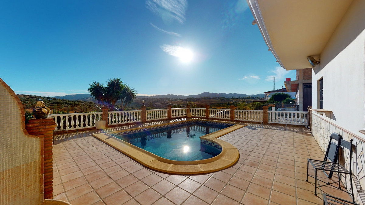 This well-located spacious villa offers the possibility for two families to live separately. The garage of 217 m2 has room for 5 cars, an office and storage space. Entrance to the garden with nice pool, shower, fruit trees and henhouse. Separate room with extra kitchen/barbecue and covered terrace. Ground floor of 216 m2 with hall, spacious living room, adjacent large fully equipped kitchen, storage room and large outdoor terrace. Three bathrooms, three bedrooms with fitted wardrobes and air conditioning hot/cold. Laundry room that can be used as a bedroom. Upper floor of 159 m2. Living room with high ceiling, fully fitted kitchen with pantry, laundry room, bathroom. Outdoor terrace. The house was built to a very high standard with the best materials as the owner was the builder. We are pleased to be able to present this dream property to you soon, either personally or via virtual viewing. Because this world, it is unique - just like our Axarquía. In Andalusia. On the Costa del Sol. Here, on the sunny side of life...