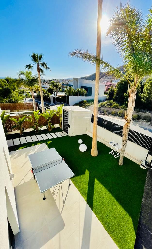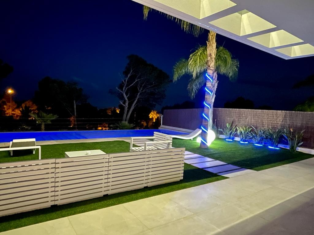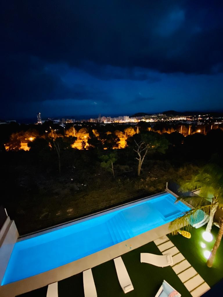The house has a spectacular infinity pool of 46 m2, barbecue area, garage for several cars, solarium, green area with garden and all those attributes you can imagine in an authentic luxury house in the heart of the Costa Blanca. \n