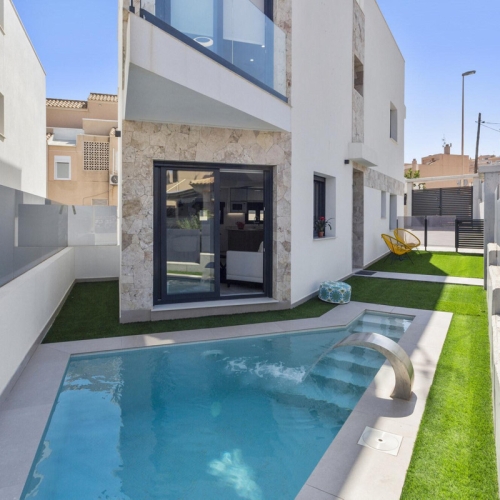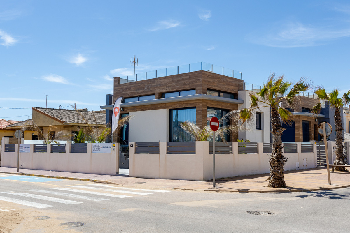 Modern hus till salu (nybyggnation) 1 minut från stranden "La Mata" med direkt havsutsikt, andra raden från stranden - i den bästa delen av staden Torrevieja - La Mata, ett område med välutvecklad infrastruktur.