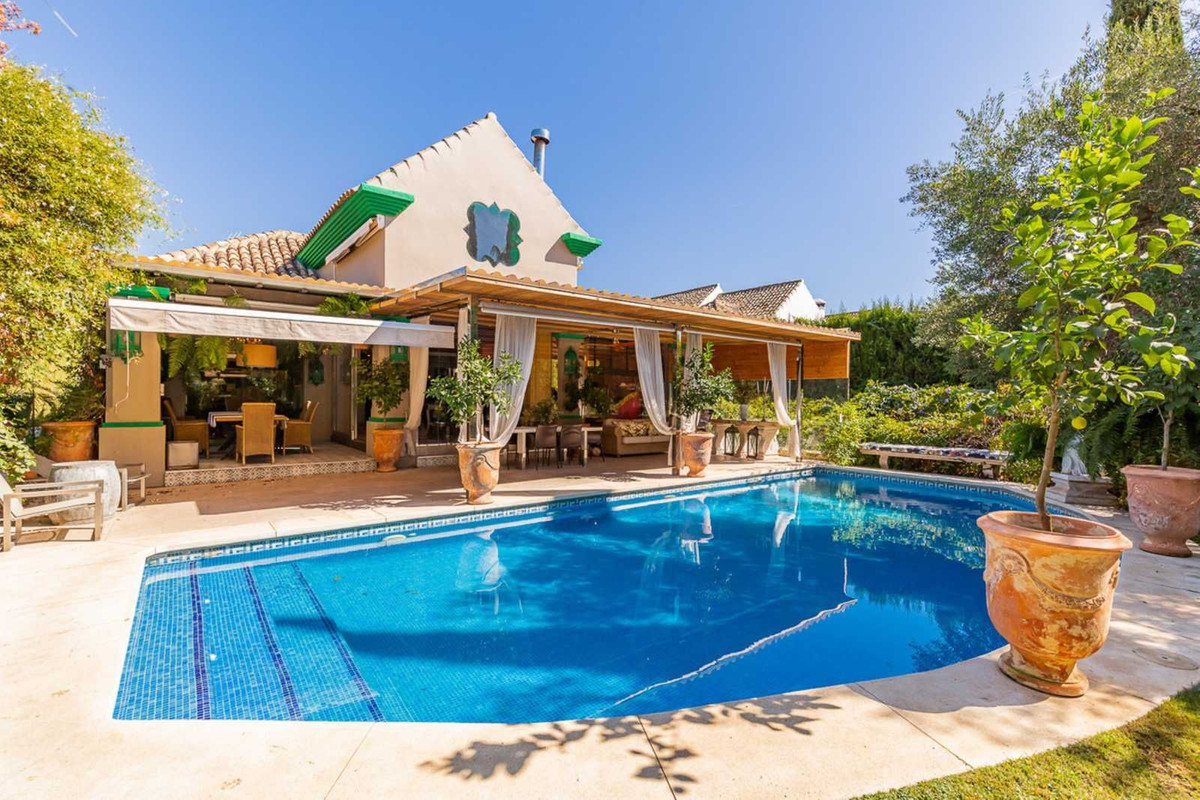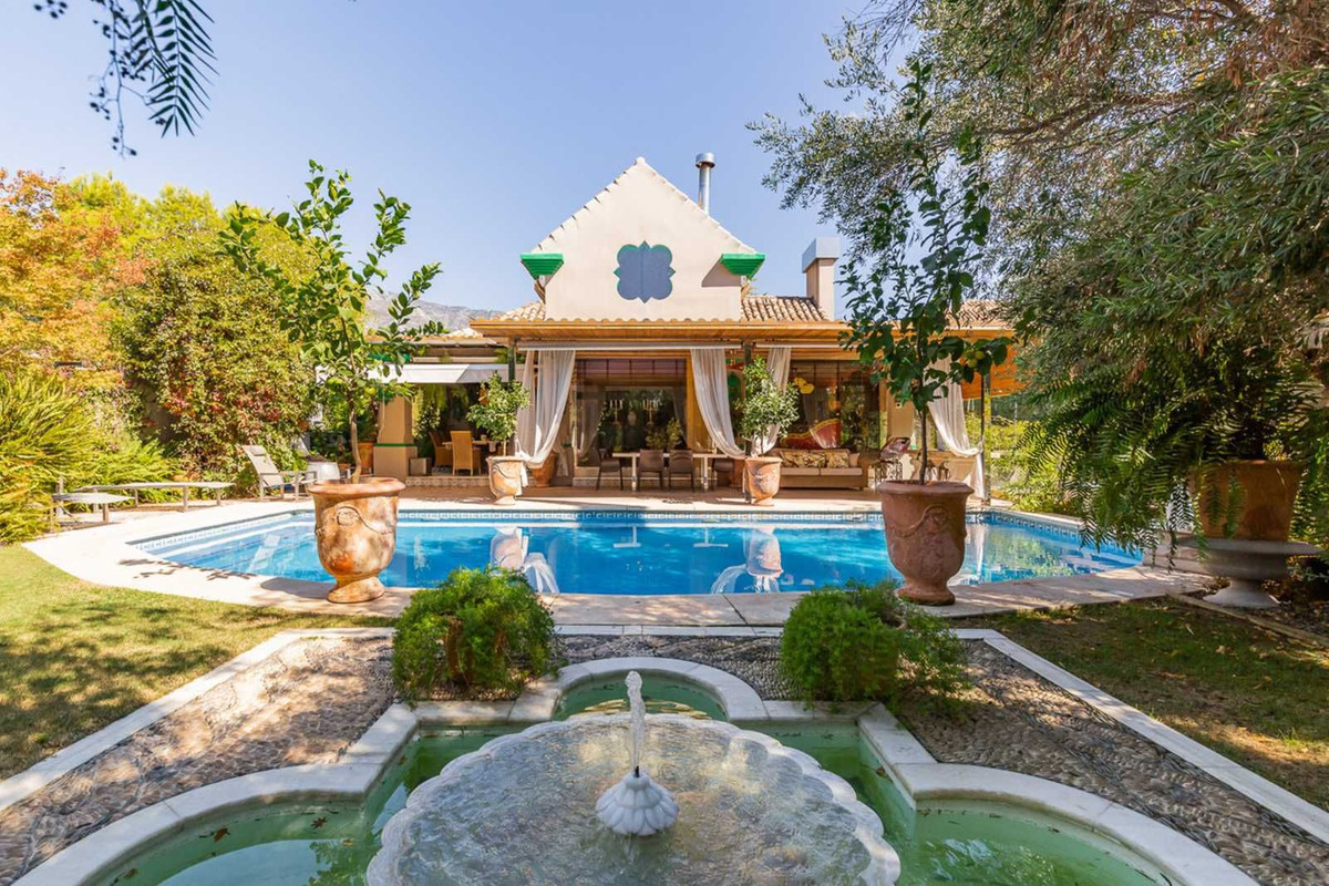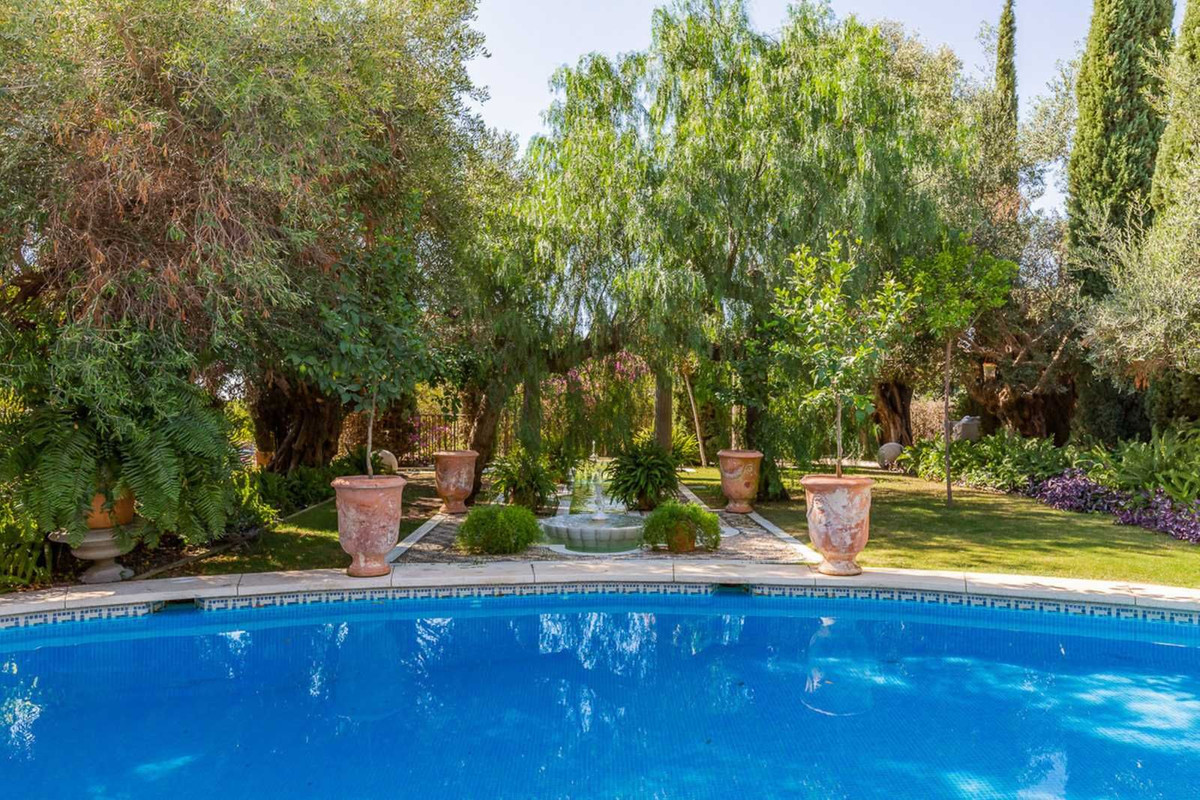 The 587m2 house is built on a 1018m2 plot with private pool, beautiful gardens, mature trees and Andalusian fountains.
