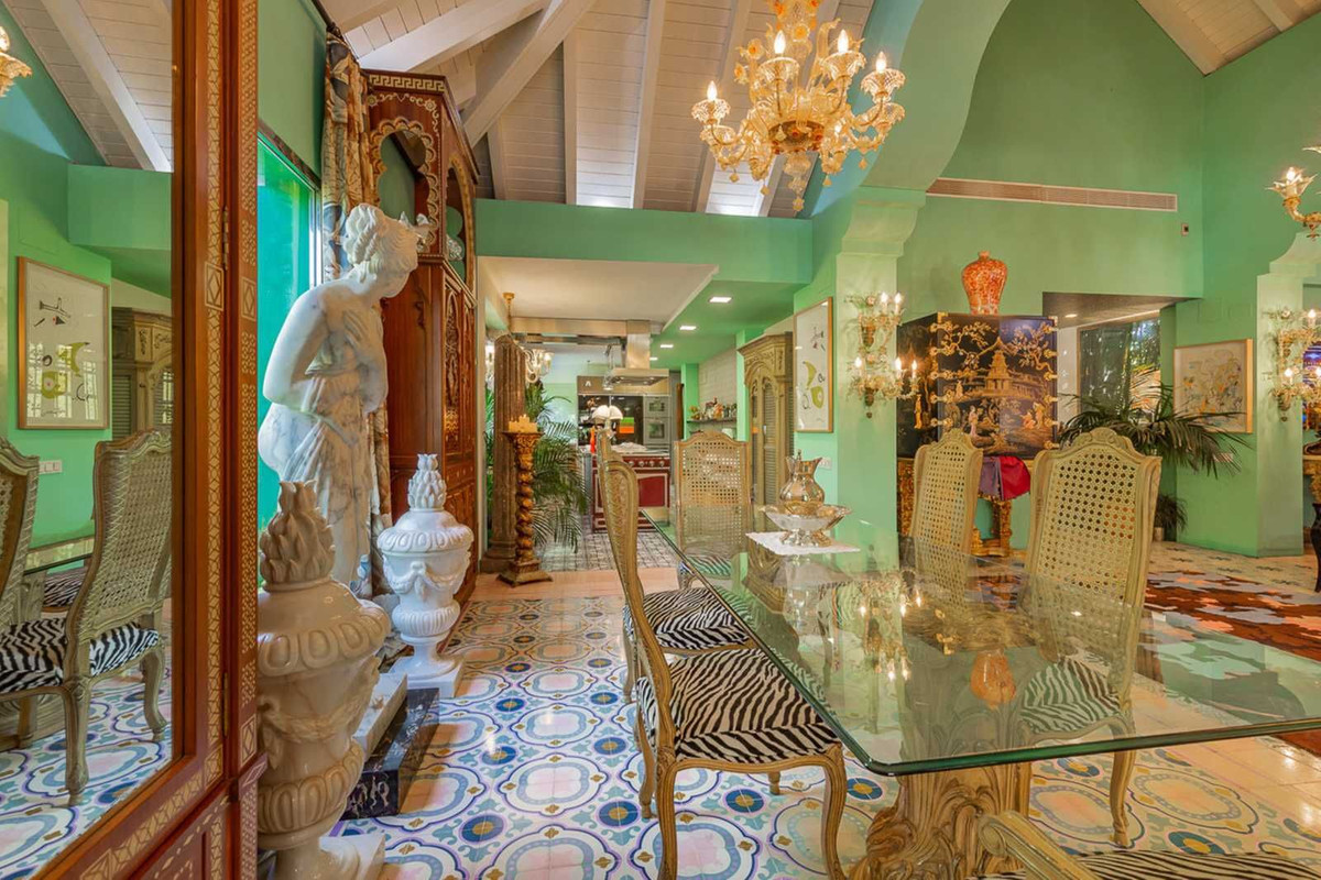 On the main floor the impressive entrance hall with marble staircase leads to a spacious living room with fireplace, the large dining room, a fully equipped kitchen and two bedrooms with en-suite bathrooms with access to the covered porch with sitting areas.