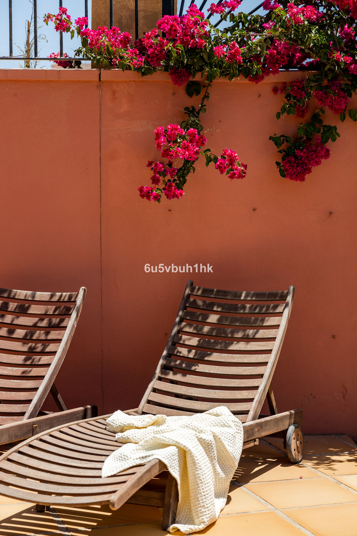 A spectacular staircase leads us to the upper floor. We love the large entrance hall with a terrace at the back. There are four bedrooms and three bathrooms, two of them en suite. The master bedroom has a wonderful bathroom overlooking the garden, a beautiful dressing room and a terrace also overlooking the garden. All bedrooms have fitted closets, and all but one have a terrace.