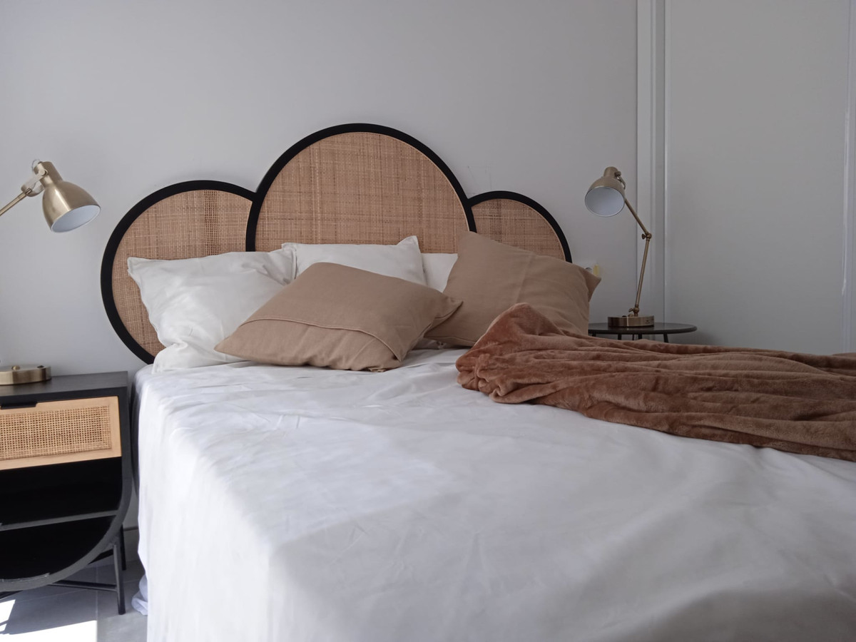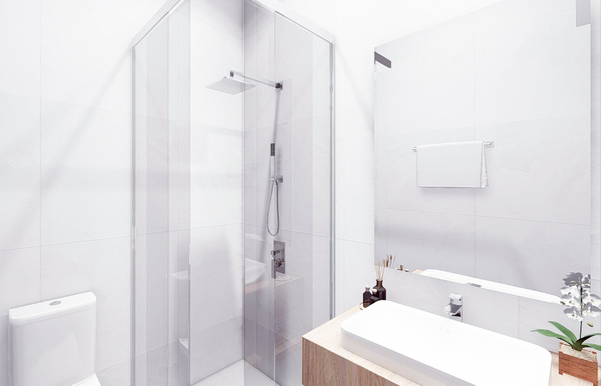 • Vitlackerade inbyggda garderober med stora skjutdörrar