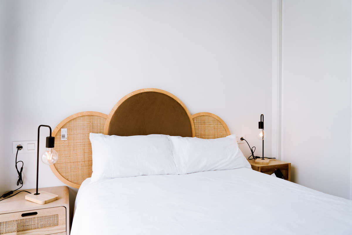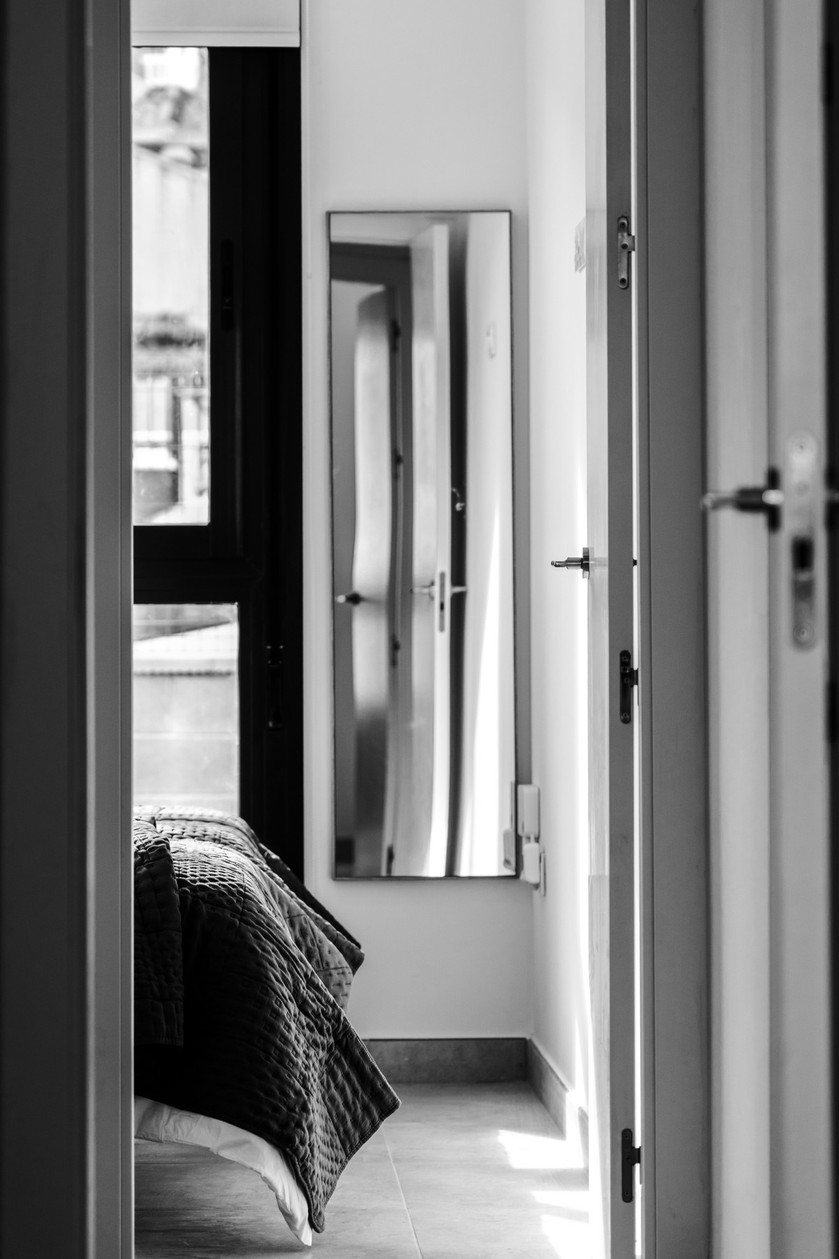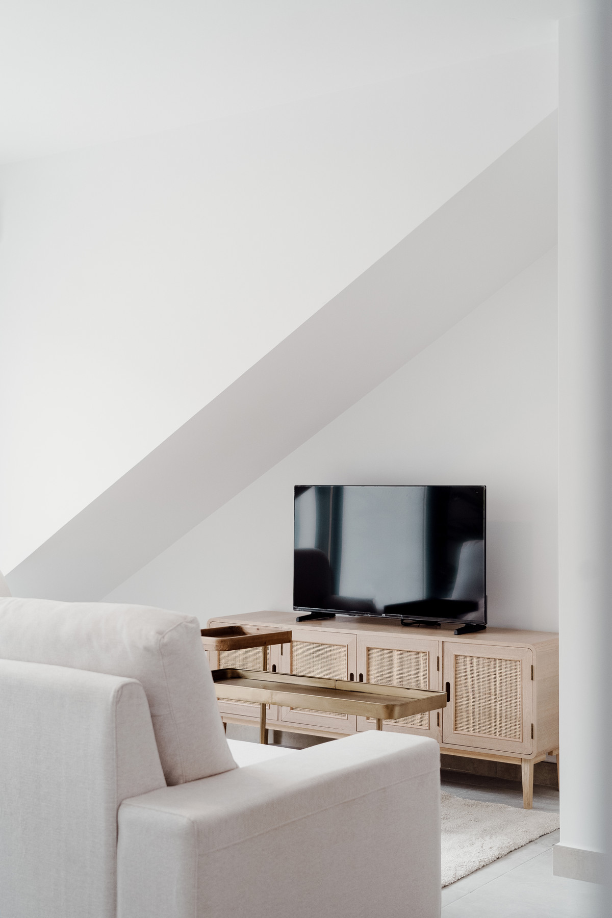 • Vitlackerad träinredning och dörrbeslag i aluminiumfärg
