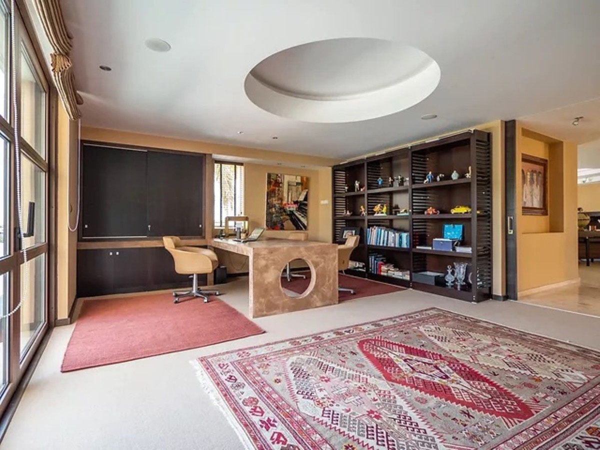 Entering the ground floor, the massive entrance door gives the sense of proportion that is kept throughout this mansion. There is a long corridor/gallery connecting the east wing with the tremendous living area and the study to the west wing's dining area. Sliding doors separating the dining room and the spacious kitchen with top of the line equipment. Behind is the wet kitchen with a walk-in freezer, larder room, separate laundry room and the designed guest wash room.