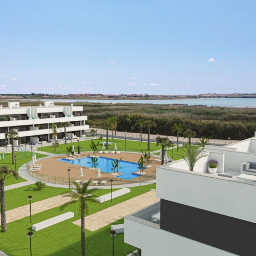 Dessa lyxiga lägenheter är uppdelade i lägenheter på bottenvåningen med trädgård eller lägenheter på första våningen med solarium på taket, så att du kan njuta av havsutsikten och skyline över Guardamar del Segura. Dessa designlägenheter ligger bara några minuter från staden Rojales och är utrustade med privat pool, luftkonditionering, kök med apparater, inomhus- och utomhusbelysning med LED samt gemensamma områden med fitness, grill, bastu, inomhus- och utomhuspool samt solterrass med solstolar. Konceptet med hållbar design, högkvalitativa ytor och exklusivt läge gör det unikt på Costa Blanca.