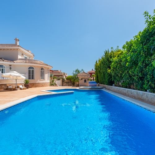 Denna vackra nybyggda villa har också 2 lägenheter och en studio! Ligger i Ciudad Quesada och byggd på en tomt på 1000 m² och består av 3 byggnader. Huvudbyggnaden består av ett hus med ett 70 m² stort vardagsrum/matsal, öppet kök med ö, 2 stora sovrum och 2 badrum och en takterrass på 120 m².