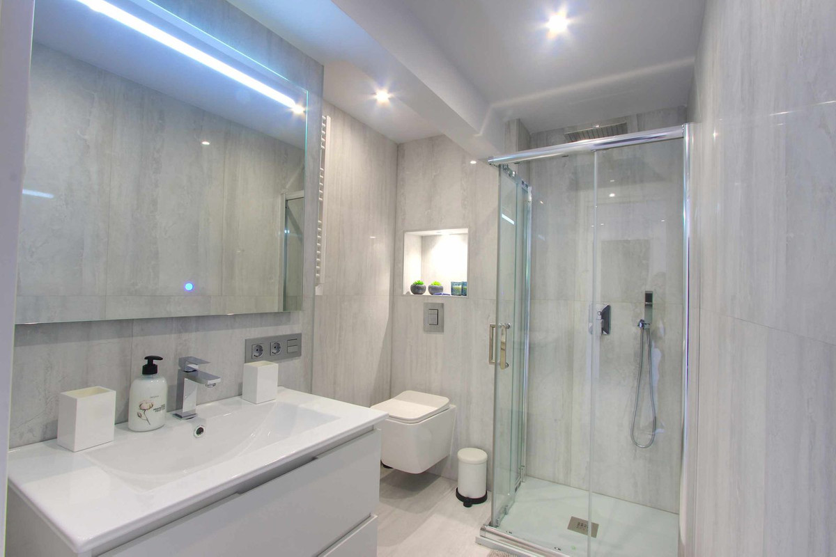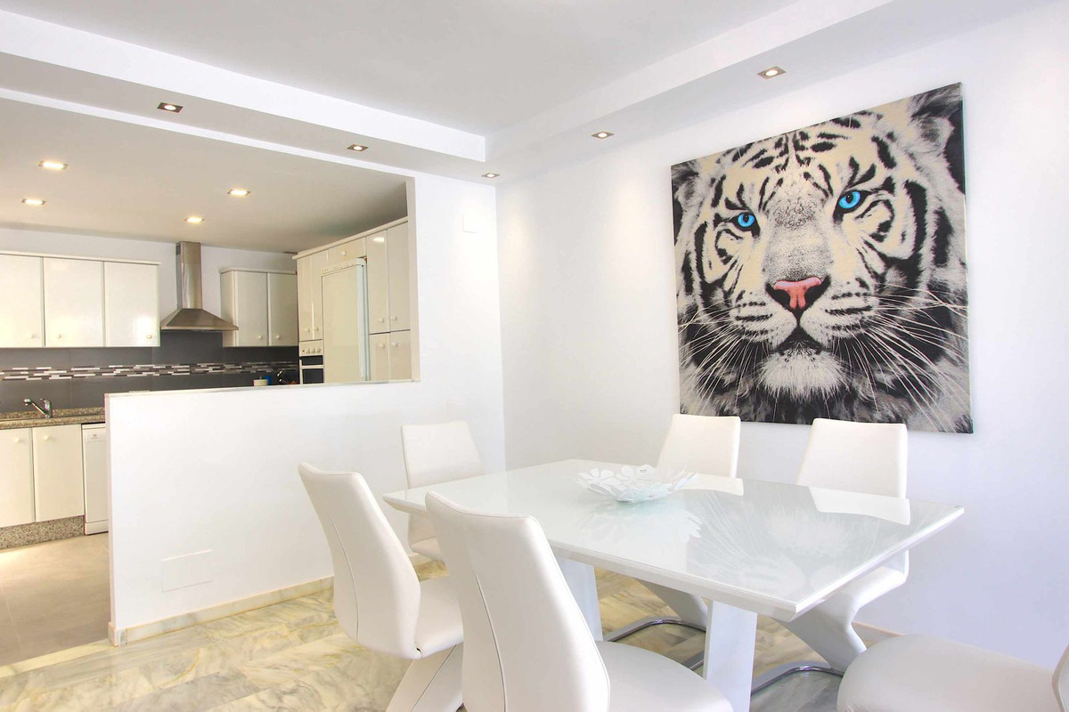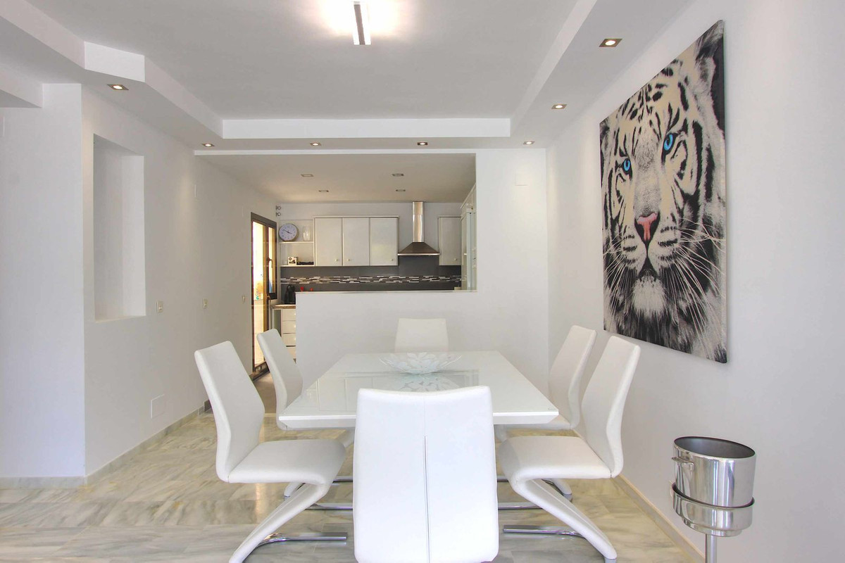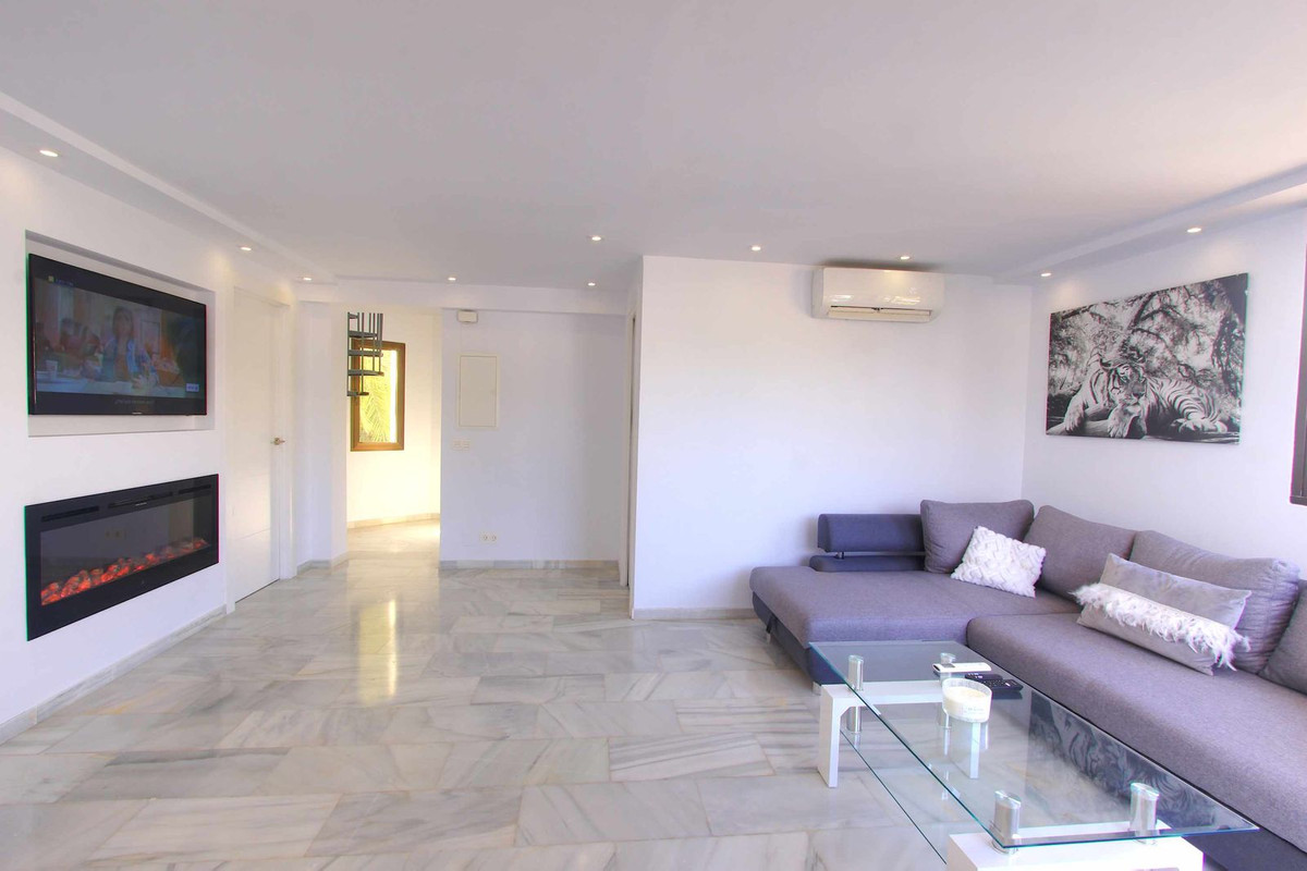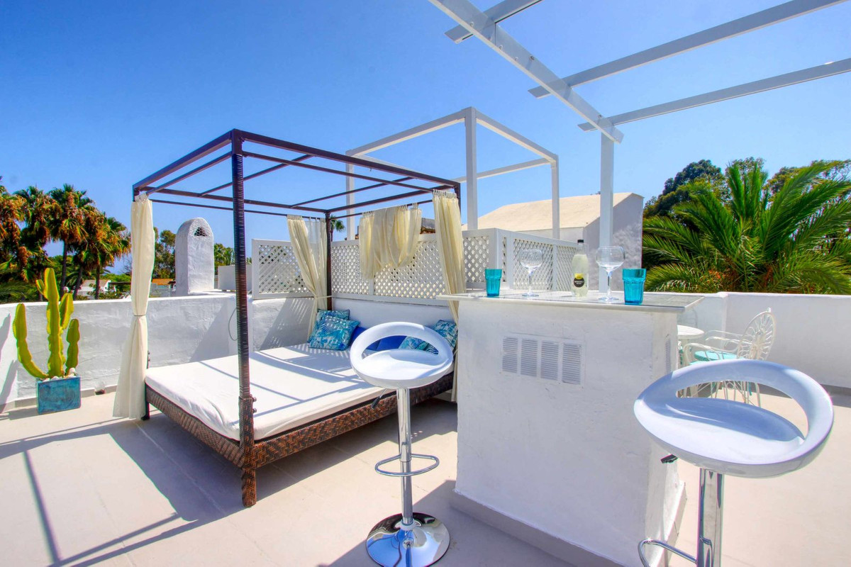 En takvåning i 2 plan på 95 m2 (+ 40 m2 takterrass) och lägenheten på första våningen på 110 m2 bygger en kombination av 2 lägenheter som har 4 sovrum tillsammans och separata ingångar. Perfekt för en större familj som letar efter en lugn plats och chill out för sommarkvällar. Lägenheterna ligger ovanpå varandra. Höjdpunkten i lägenheterna är den stora takterrassen med en lounge utomhus med fantastisk havsutsikt över bergen och utsikt över trädgården och poolområdena. Strandnära lägenhetskomplex precis intill stranden. Prisbelönt trädgård med exotiska växter, bäckar, fontäner och två stora pooler och två barnpooler för de yngsta barnen. Lägenheterna består av 2 kök, 2 vardagsrum, 4 sovrum (1 queen + 2 enkelsängar och 2 bäddsoffor i lägenhet på 1:a våningen och en queen size-säng och 2 enkelsängar och 2 extrasängar i lägenhet på övervåningen), 4 badrum , privat takterrass. Från terrassen har du en vacker utsikt över havet - poolen och bergen och det spektakulära fina trädgårdsområdet. Lägenheten ligger bara 80 meter från en av Marbellas bästa och mest barnvänliga stränder. Vi har en lekplats för små barn bara 40 meter bort. Flera restauranger, barkaffe, frisör, slaktare, apotek, busstation och 2 stora snabbköp på gångavstånd. Nära till golf- och tennisklubbar, 8 km till Marbella och 12 km till Puerto Banus. Lägenheten har allt som behövs för en bekväm semester: fullt utrustade kök inklusive diskmaskiner, tvättmaskiner, strykbräda. För familjer med barn finns även en spjälsäng, barnstol och en barnvagn på begäran. Sammansättning: 2 kök, 4x sovrum, 4x badrum, 2 vardagsrum med Smart TV-områden.