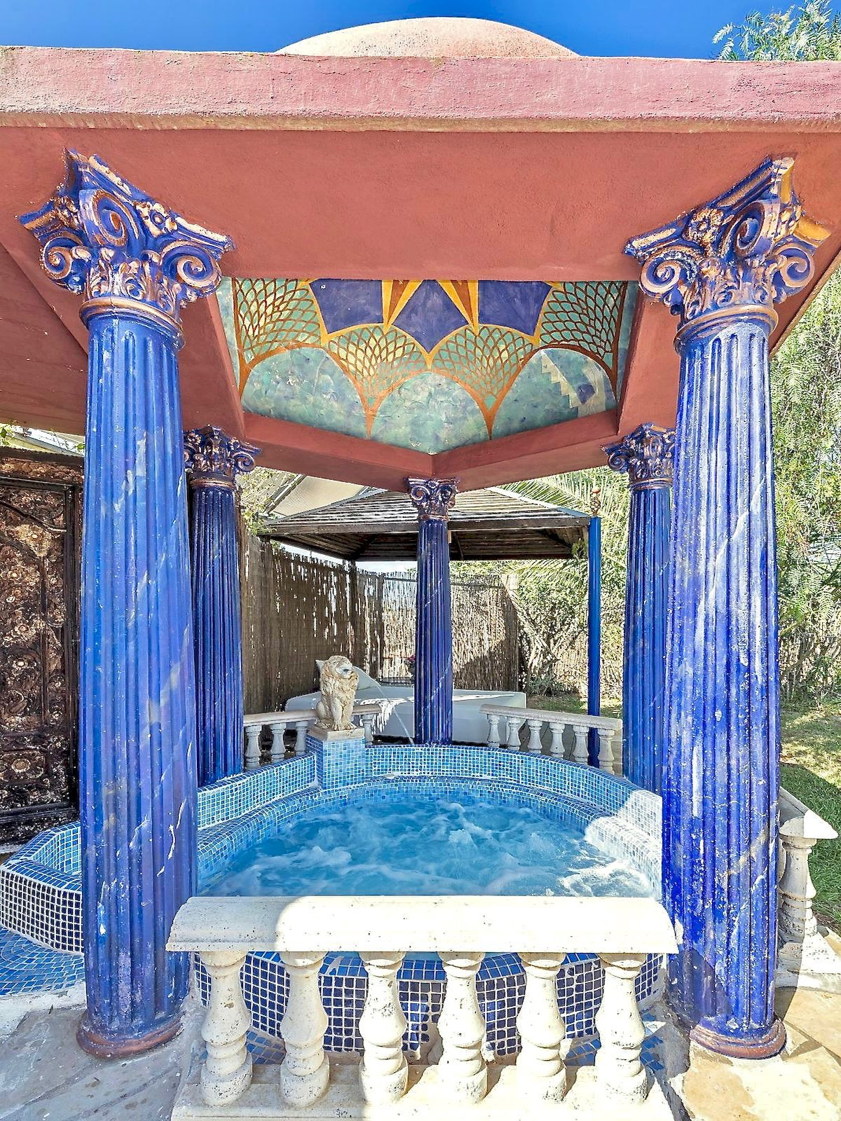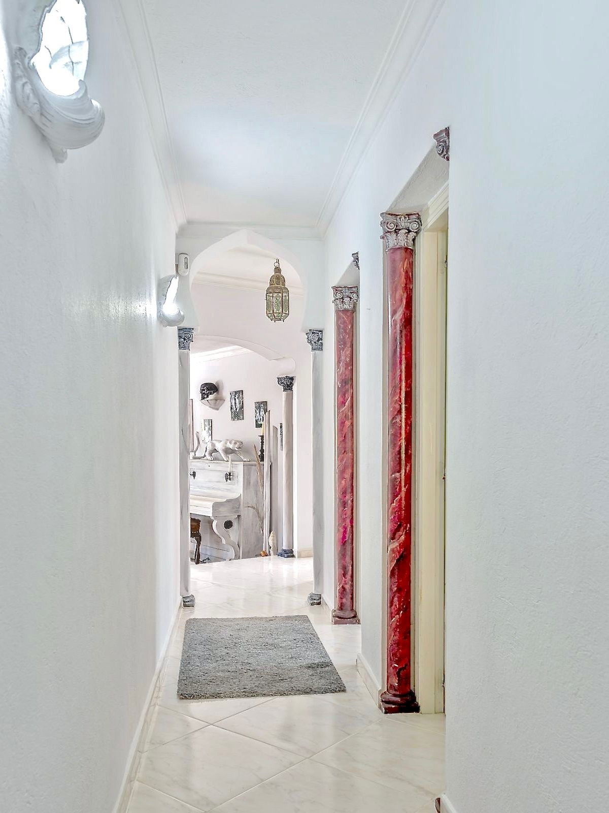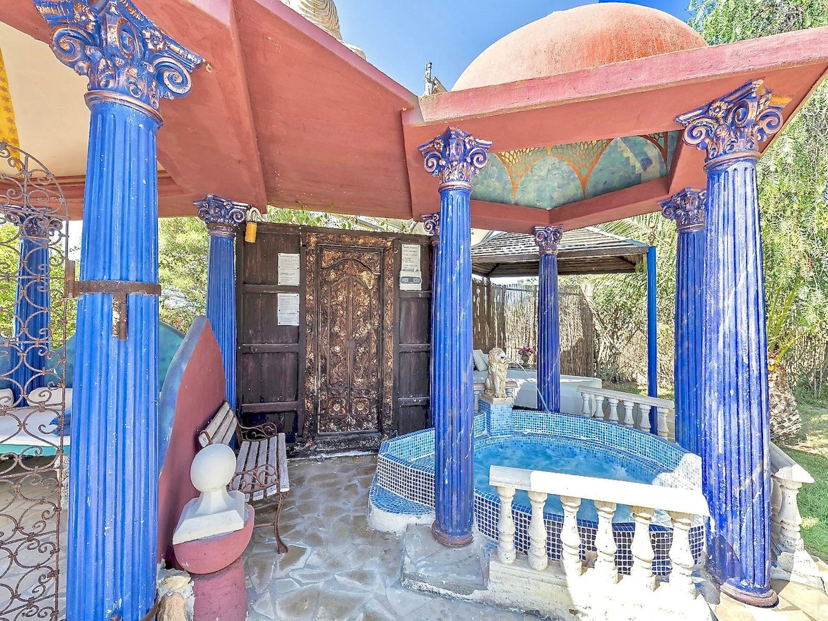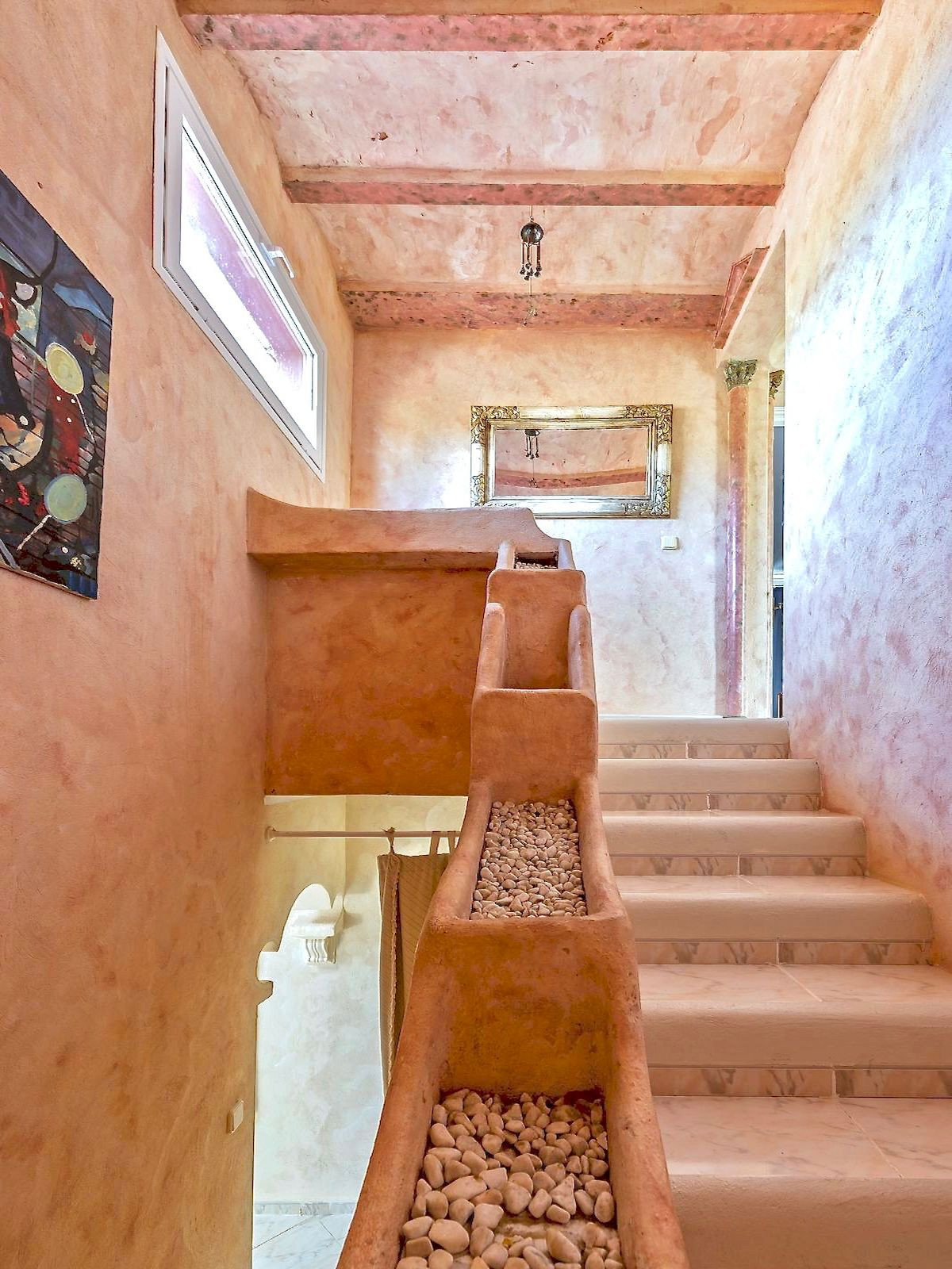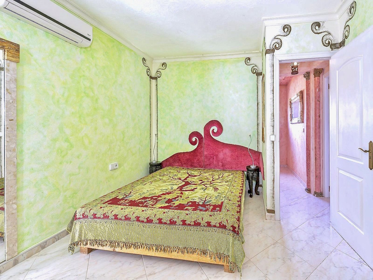 MG Villas Luxury Property - Offers you this Exclusive Villa located in Ibiza just 5 km from the capital and very close to the best beaches of the Island, such as Las Salinas, Playa d 'en Bossa, Cala Yondal, Cala D'Hort etc. . If you are looking for a unique, spectacular and exclusive property located in the middle of the wonderful countryside of Ibiza, this will be your best choice. Large Mediterranean garden of 2,030 m2 with  palm trees, subtropical plants, shrubs and fruit trees such as almond and olive trees. Idyllic spaces with flowers and plants, a pond with fish and aquatic flowers, everything is created to relax . The beautiful chill out areas in the middle of a green oasis invite you to enjoy your well-deserved break time. And don't forget the large Arabian-style pool with its spectacular shell-shaped fountain. The fantastic barbecue area with its covered gazebo offers enough space for your family and friends. Main entrance that impresses with a large dome. The 337 m2 are distributed over 2 floors and on the ground floor we find the spacious living-dining room, a double bedroom with an en-suite bathroom, the other two double bedrooms share another bathroom, the kitchen with access to a covered terrace with an Arabic dome, to eat. The internal staircase leads to the first floor where there are two more bedrooms, each with its own bathroom en suite and a private terrace with views of the sea, the famous salt flats of Ibiza and the beautiful garden. Attached to the house there is an office and a machine room, both with their own entrance. Large garage of 55 m2 for 2 cars, motorcycles and with storage room.