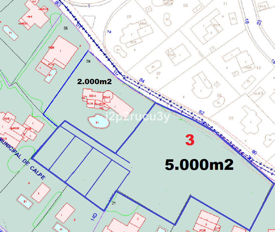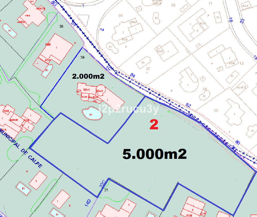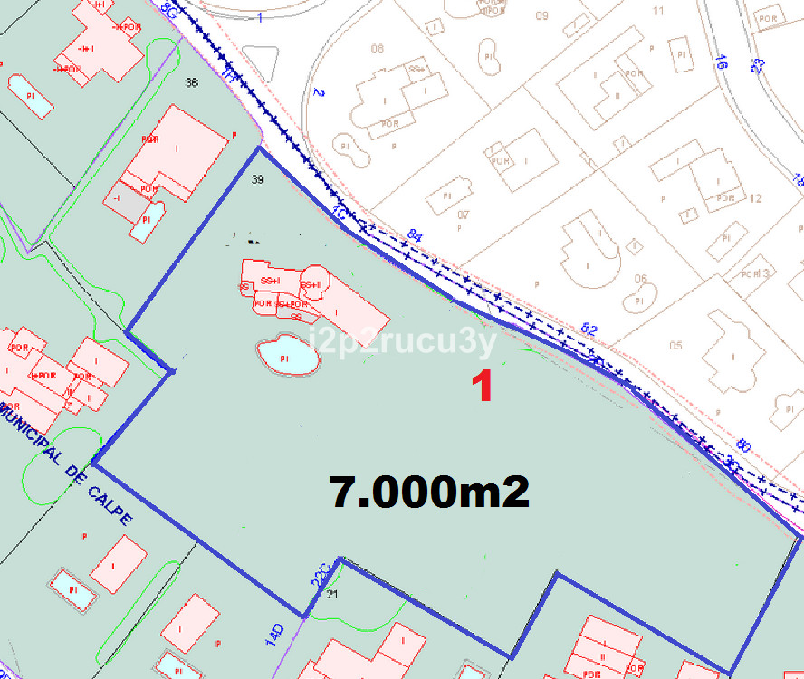 Exclusive plot in Calpe (Carrió alto 1-c), of 7000m2 with a 400m2 villa. It is offered with the following possibilities:1) Sale of the entire land with housing for the price of € 2,990,000It is reported that 21 houses can be built by demolishing the house or 15 by keeping the existing house with 2000 m2.2) Sale of the plot of 5000m2 without housing for the price of € 1,800,0003) Sale of the plot of 1.8000m2 with the house of 400m2 of surface for the price of 1.350.000 €